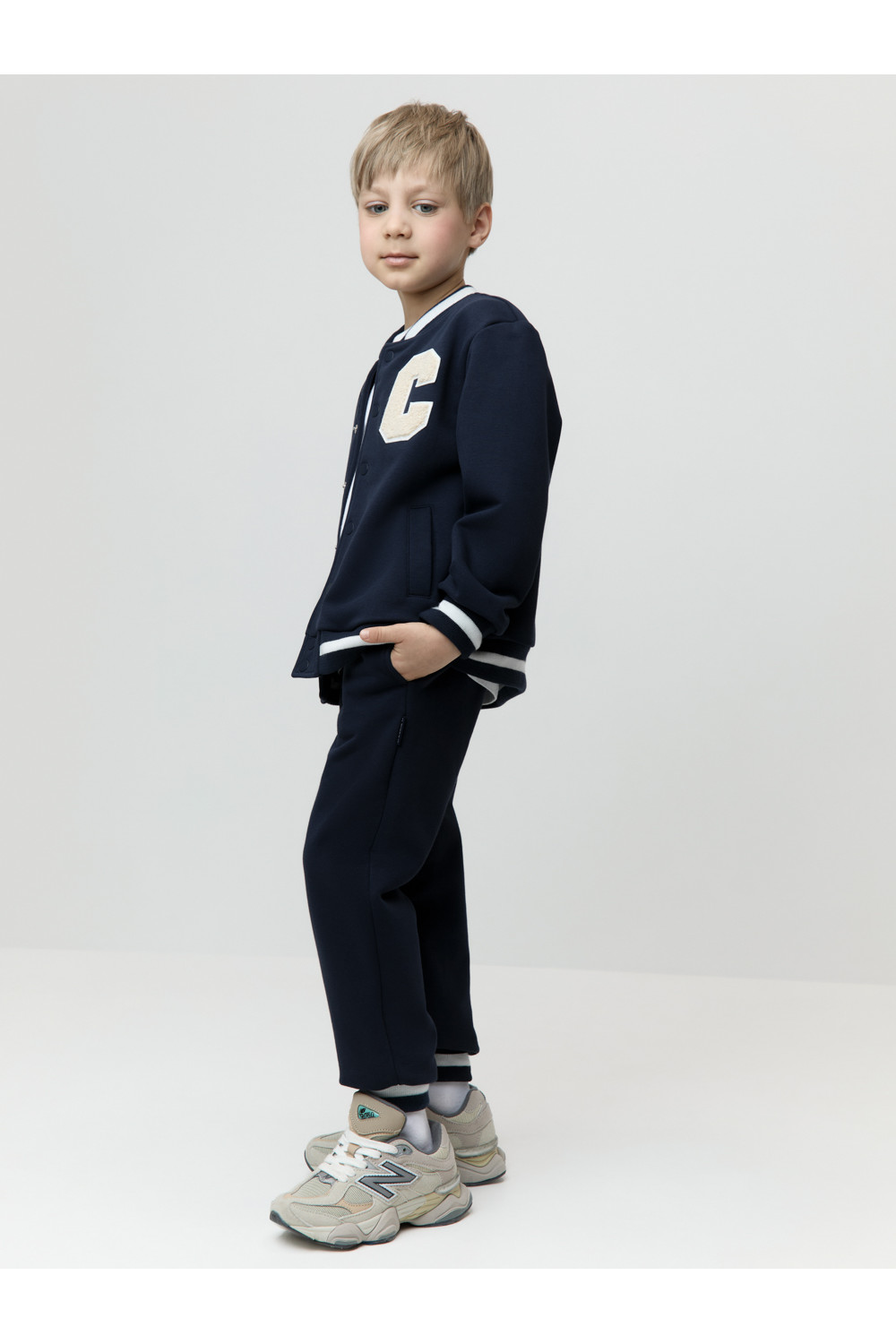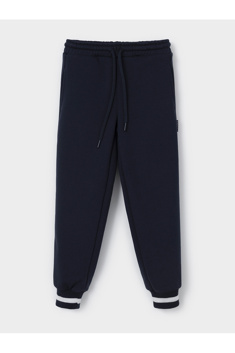 Трикотажные брюки для мальчика из мягкого петельчатого футера. В составе 80% натурального хлопка и 20% полиэстера, при этом полиэстер ввязан внутрь по особой технологии и не соприкасается с кожей. Эластичный пояс на резинке регулируется по ширине с помощью шнурка. Изделие сохраняет цвет и форму после многократных стирок. Все трикотажные полотна производятся в соответствии с нормами швейцарского сертификата ЭкоТекс.