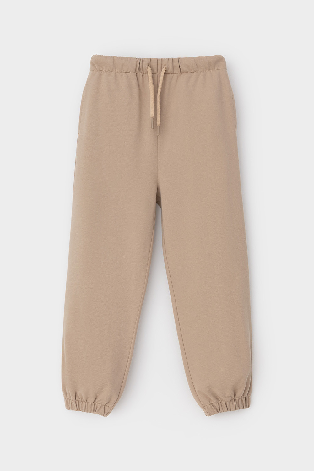 Трикотажные брюки для мальчика из петельчатого футера. Эластичный пояс на резинке регулируется по ширине с помощью шнурка. По бокам два удобных кармана. Внизу эластичные манжеты на резинке.