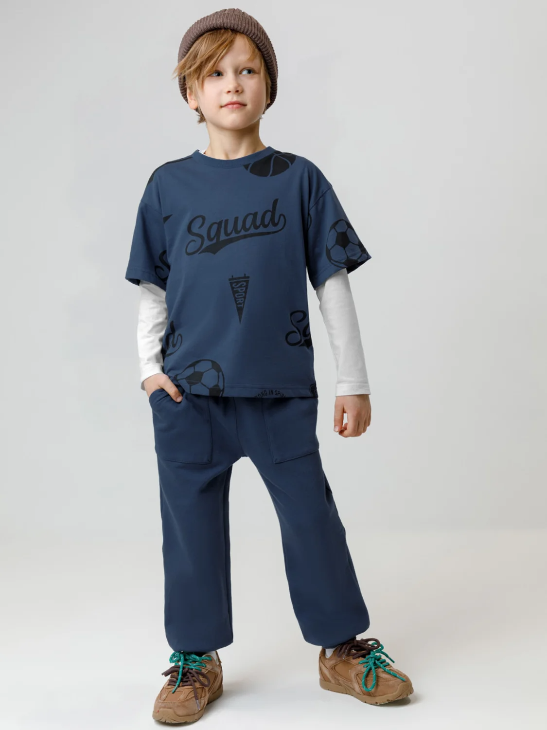 Брюки для мальчика из мягкого петельчатого футера трёхнитки. Модель с эластичным поясом на резинке. По бокам два удобных кармана. Низ на манжетах. Изделие сохраняет цвет и форму после многократных стирок. Все трикотажные полотна производятся в соответствии с нормами швейцарского сертификата ЭкоТекс.