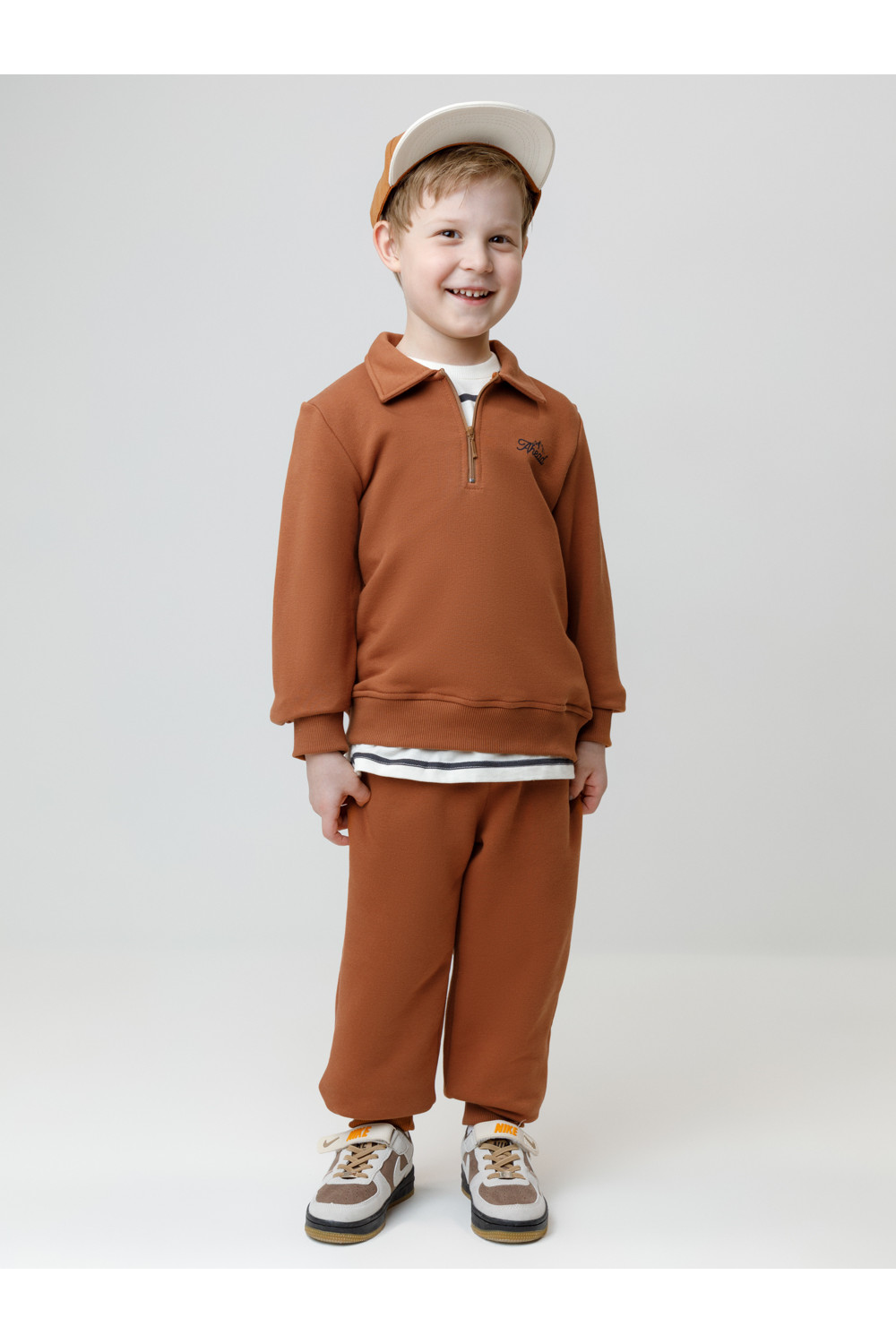 Тёплые брюки для мальчика из мягкого футера с начёсом. Модель с эластичным поясом на резинке регулируется по ширине с помощью шнурка. По бокам два удобных кармана. Низ на манжетах. Изделие сохраняет цвет и форму после многократных стирок. Все трикотажные полотна производятся в соответствии с нормами швейцарского сертификата ЭкоТекс.