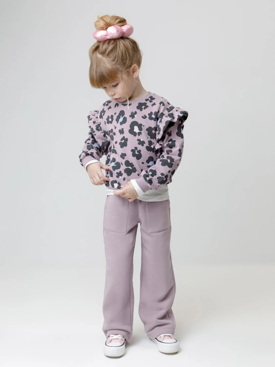 Прямые брюки для девочки из мягкого трикотажа с начёсом. Эластичный пояс на резинке регулируется по ширине с помощью шнурка. По бокам два удобных накладных кармана. Изделие сохраняет цвет и форму после многократных стирок. Все трикотажные полотна производятся в соответствии с нормами швейцарского сертификата ЭкоТекс.