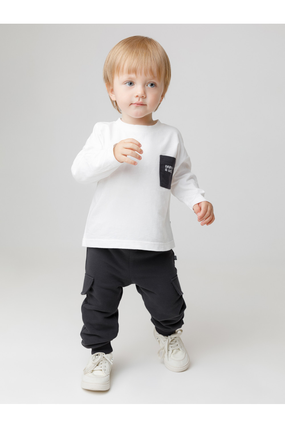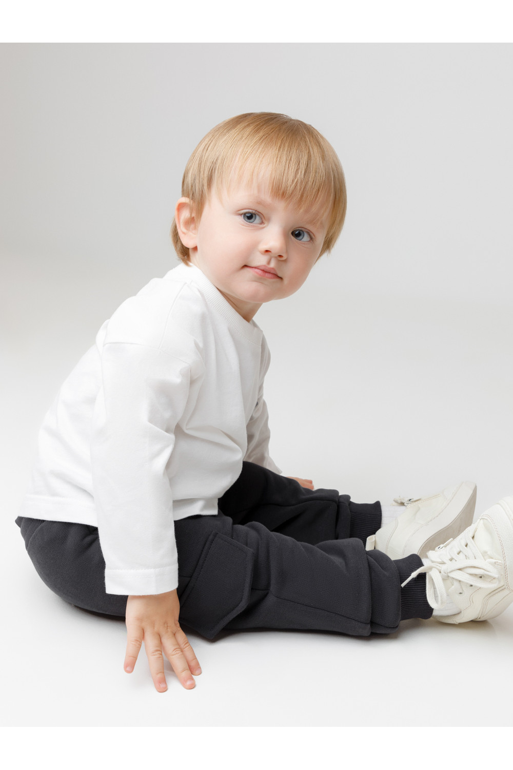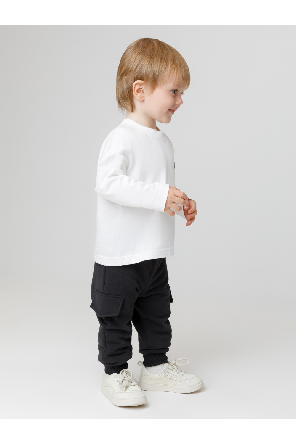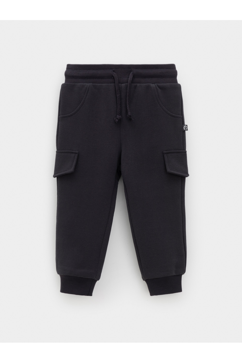 Брюки для мальчика из мягкого петельчатого футера трёхнитки. В составе 80% натурального хлопка и 20% полиэстера, при этом полиэстер ввязан внутрь по особой технологии и не соприкасается с кожей. Модель с эластичным поясом на резинке и утягивающим шнурком для регулировки по талии. По бокам два накладных клапана без карманов. Низ на манжетах. Изделие сохраняет цвет и форму после многократных стирок. Все трикотажные полотна производятся в соответствии с нормами швейцарского сертификата ЭкоТекс.