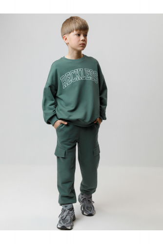 Брюки для мальчика из мягкого петельчатого футера трёхнитки. В составе 80% натурального хлопка и 20% полиэстера, при этом полиэстер ввязан внутрь по особой технологии и не соприкасается с кожей. Модель с эластичным поясом на резинке и утягивающим шнурком для регулировки по талии. По бокам четыре удобных кармана. Низ на манжетах. Изделие сохраняет цвет и форму после многократных стирок. Все трикотажные полотна производятся в соответствии с нормами швейцарского сертификата ЭкоТекс.