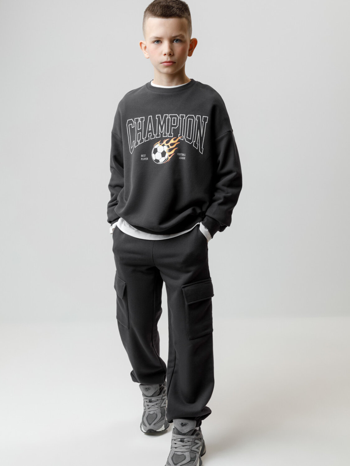Брюки для мальчика из мягкого петельчатого футера трёхнитки. Модель с эластичным поясом на резинке и утягивающим шнурком для регулировки по талии. По бокам четыре удобных кармана. Низ на манжетах. Изделие сохраняет цвет и форму после многократных стирок. Все трикотажные полотна производятся в соответствии с нормами швейцарского сертификата ЭкоТекс.