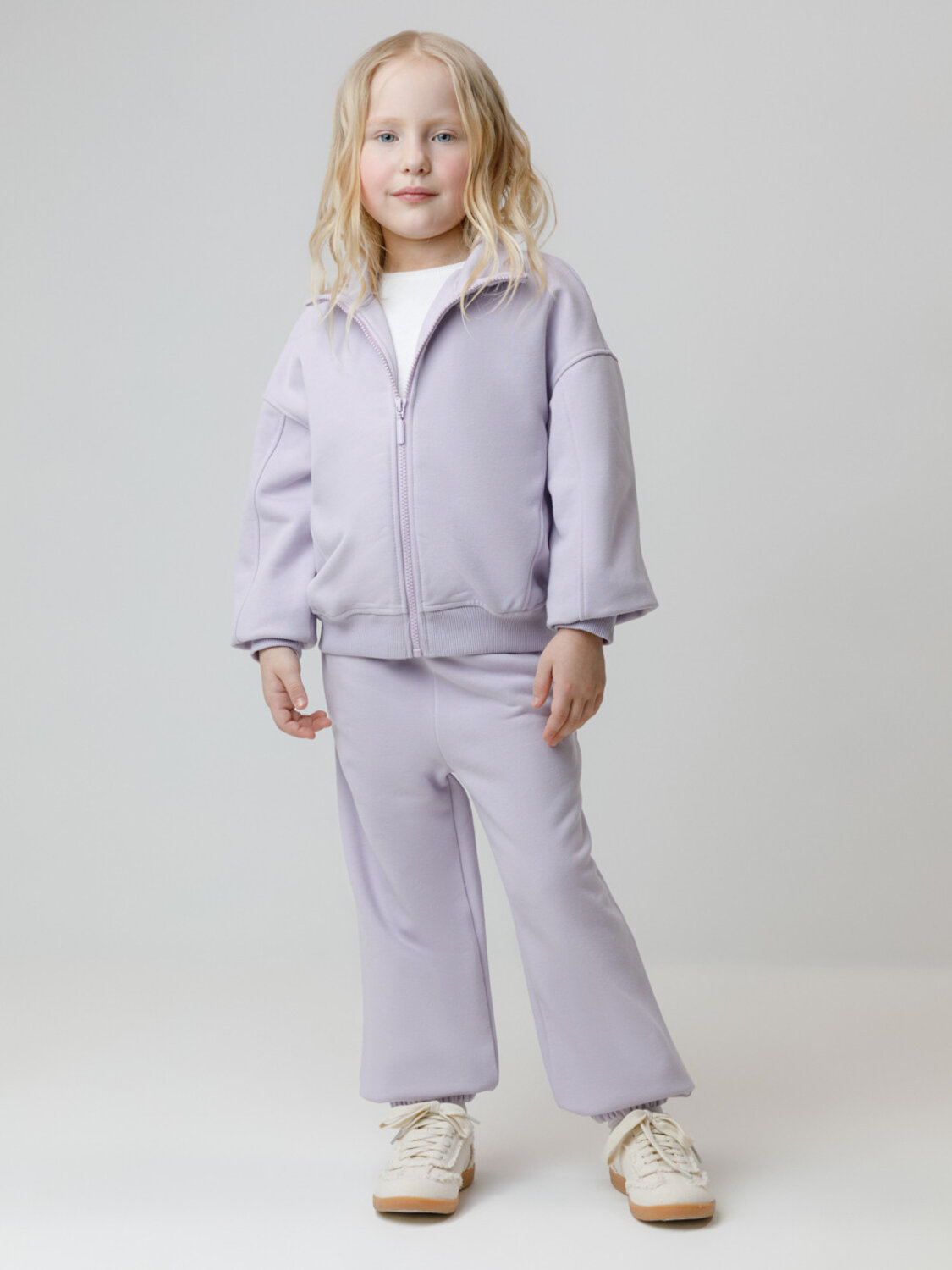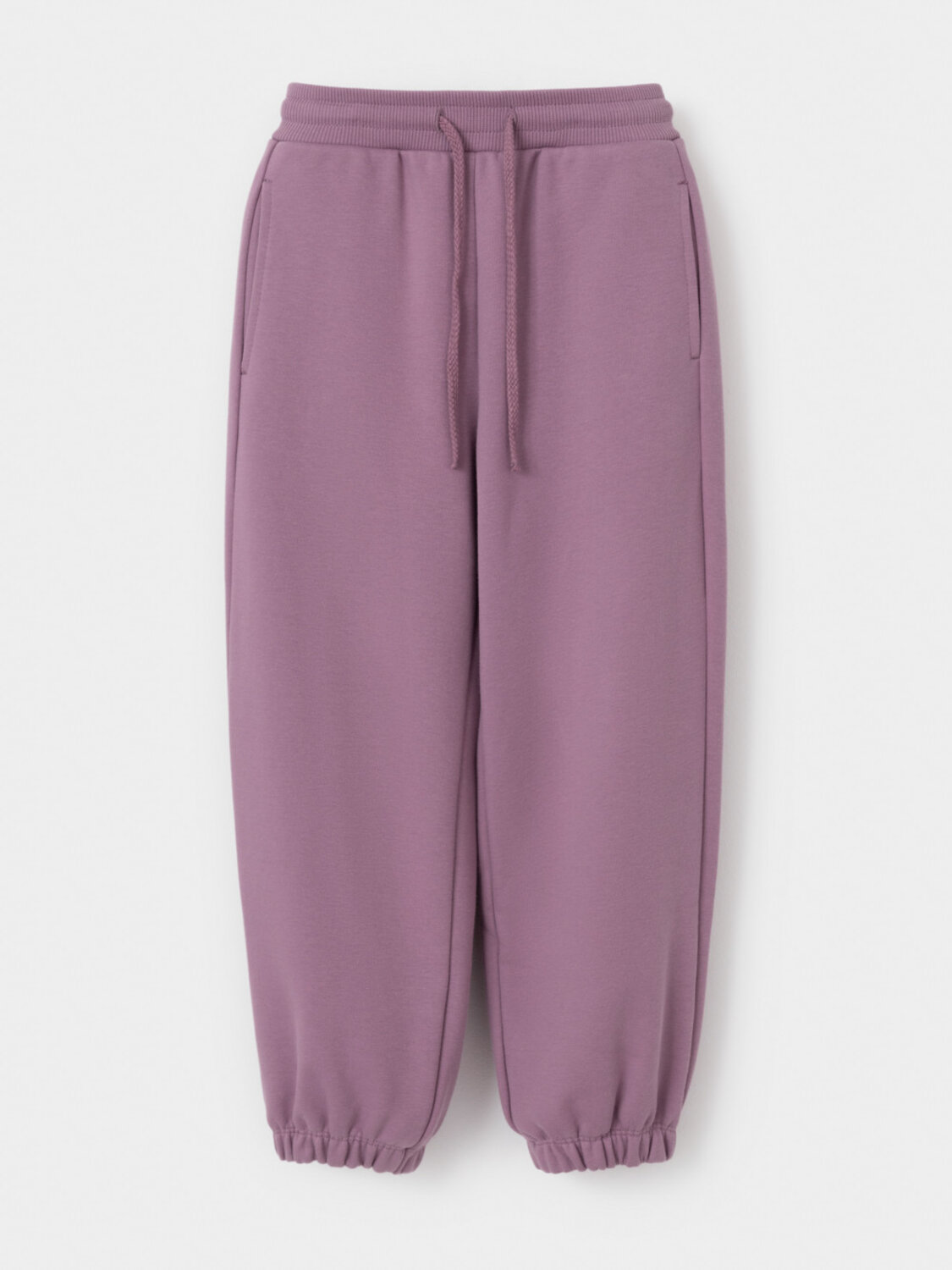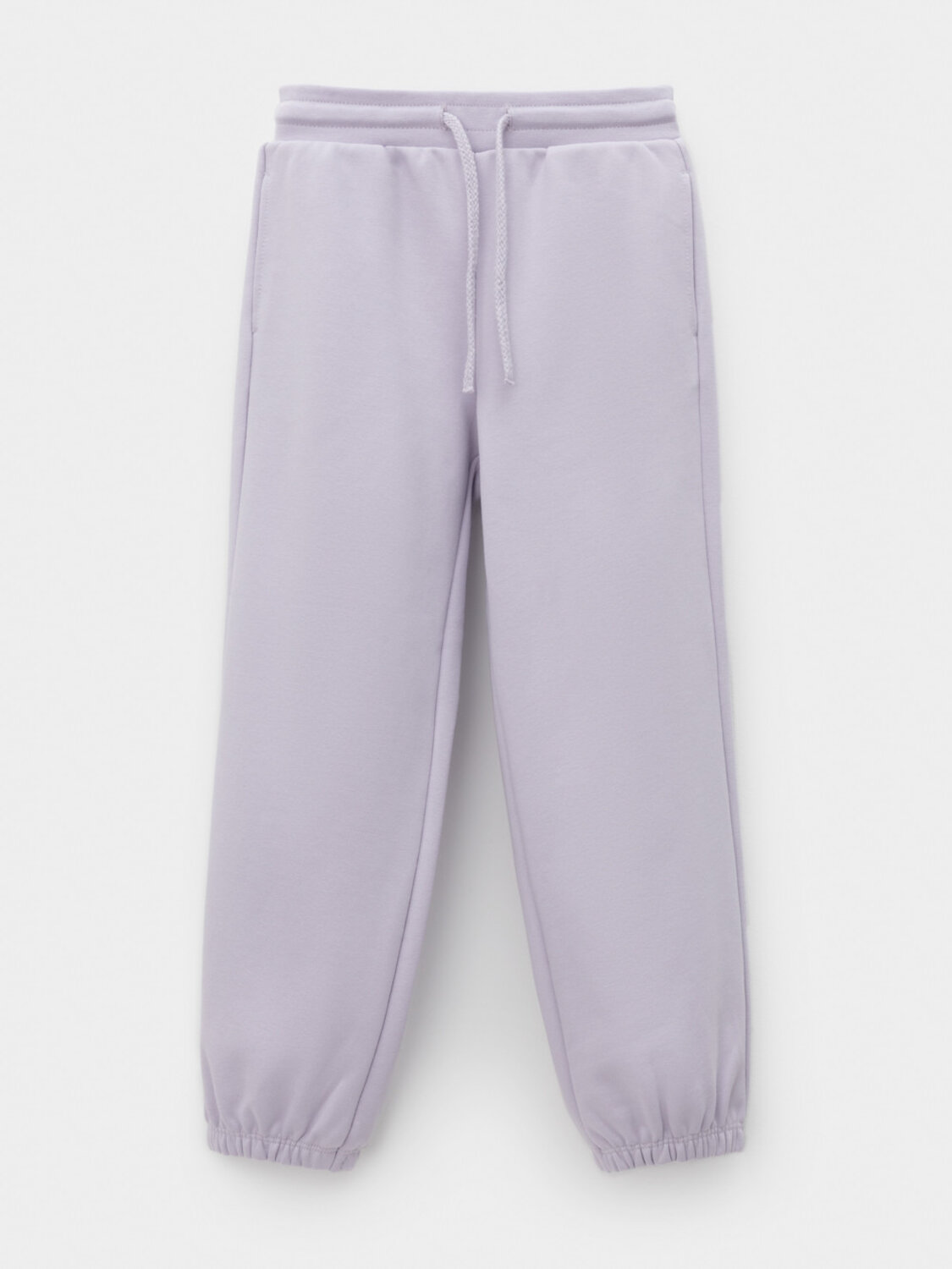 Брюки из мягкого петельчатого футера для девочки. Модель с эластичным поясом на резинке. По бокам два удобных кармана. Низ на манжетах. Изделие сохраняет цвет и форму после многократных стирок. Все трикотажные полотна производятся в соответствии с нормами швейцарского сертификата ЭкоТекс.