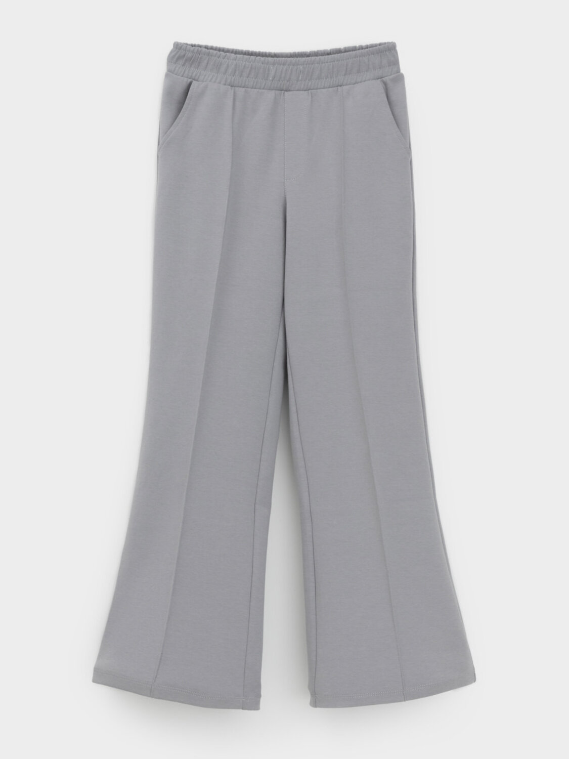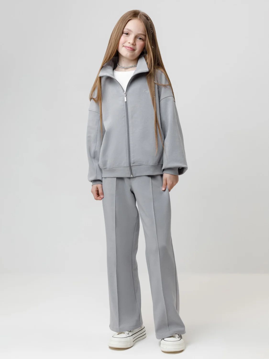 Прямые брюки со стрелками для девочки. Изготовлены из премиального трикотажного полотна DOUBLE FACE. Эластичный пояс регулируется по ширине с помощью шнурка. По бокам два удобных кармана. Изделие сохраняет цвет и форму после многократных стирок. Все трикотажные полотна производятся в соответствии с нормами швейцарского сертификата ЭкоТекс.