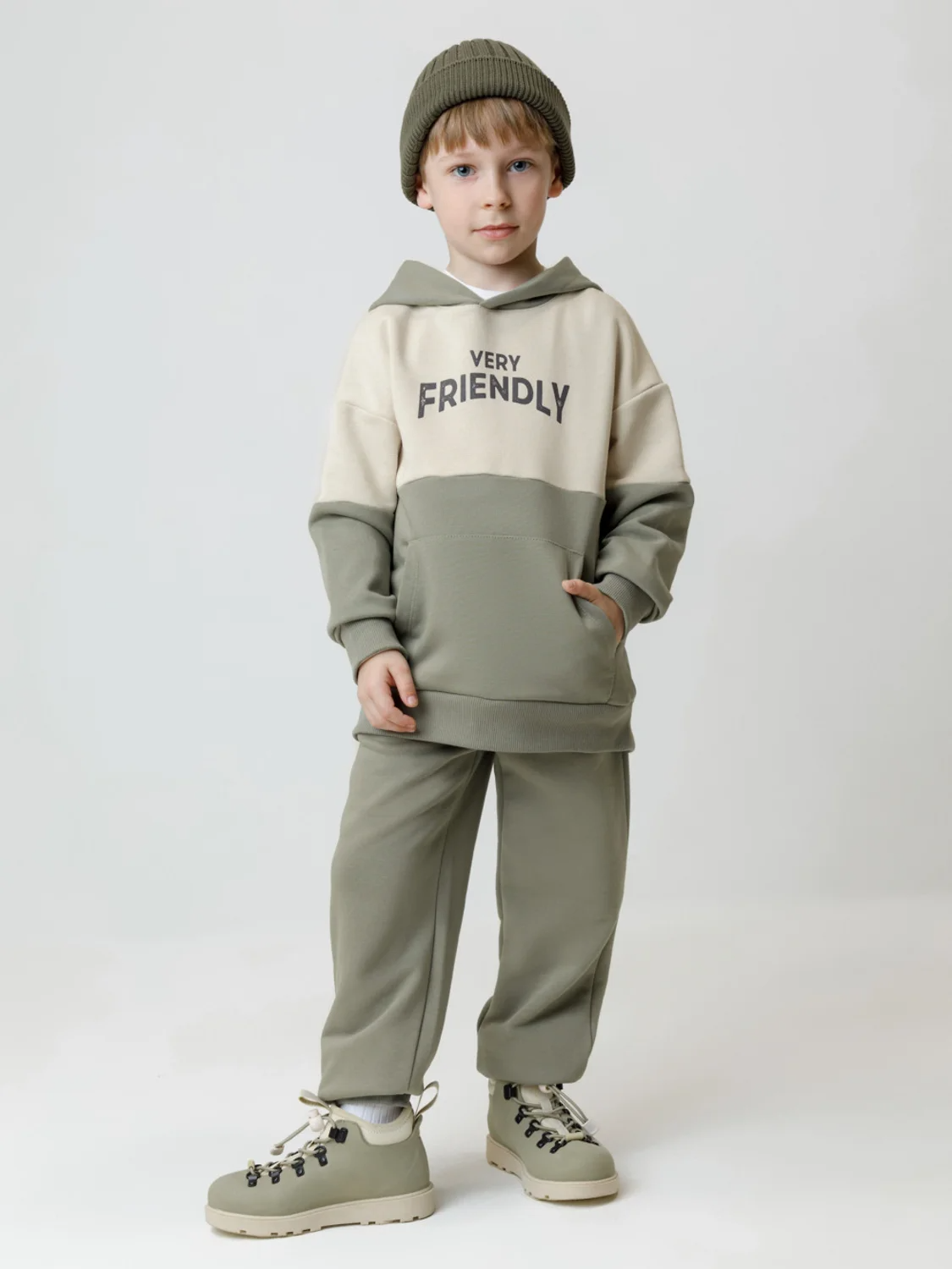 Брюки для мальчика из мягкого петельчатого футера трёхнитки. Модель с эластичным поясом на резинке регулируется по ширине с помощью шнурка. По бокам два удобных кармана. Низ на манжетах. Изделие сохраняет цвет и форму после многократных стирок. Все трикотажные полотна производятся в соответствии с нормами швейцарского сертификата ЭкоТекс.