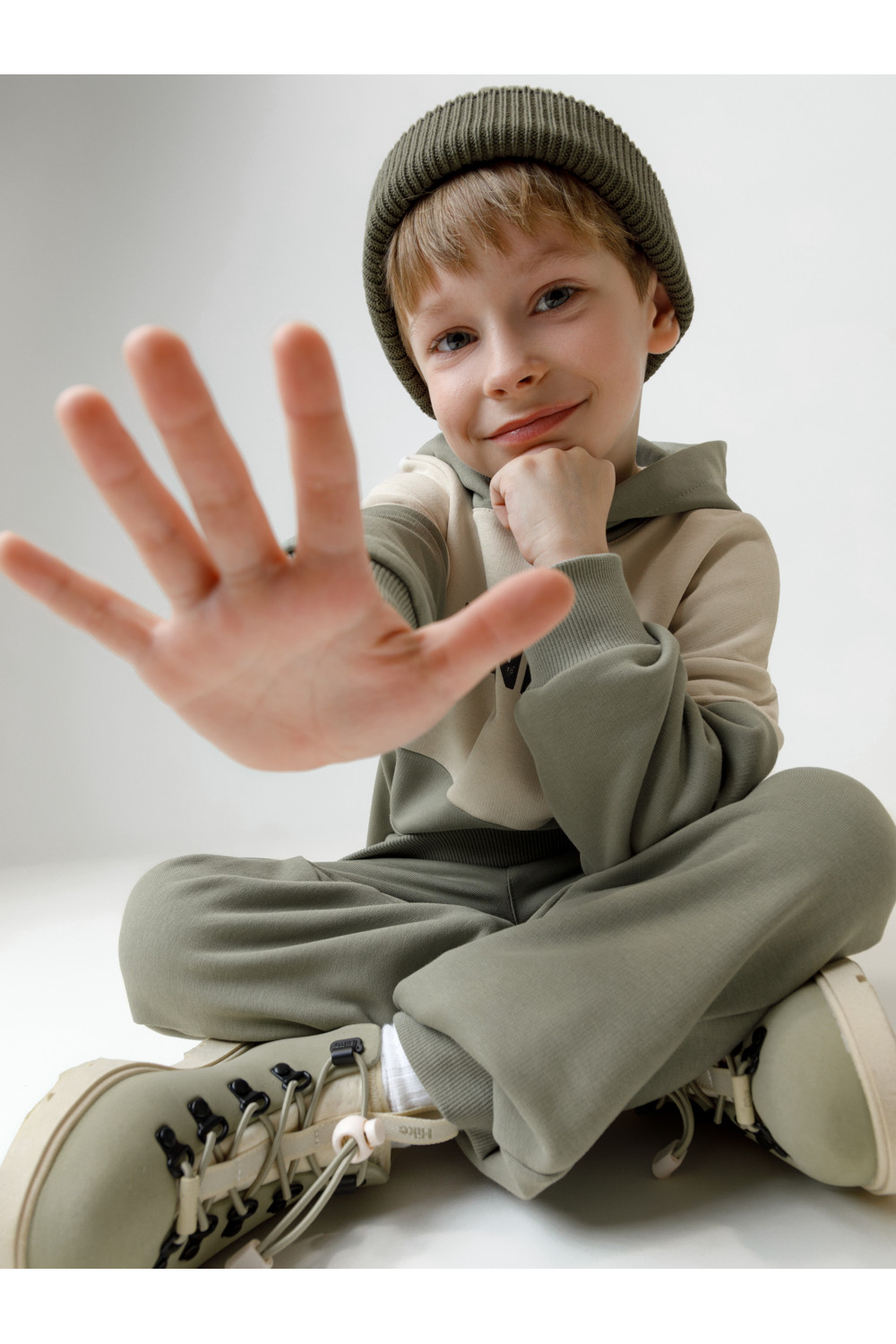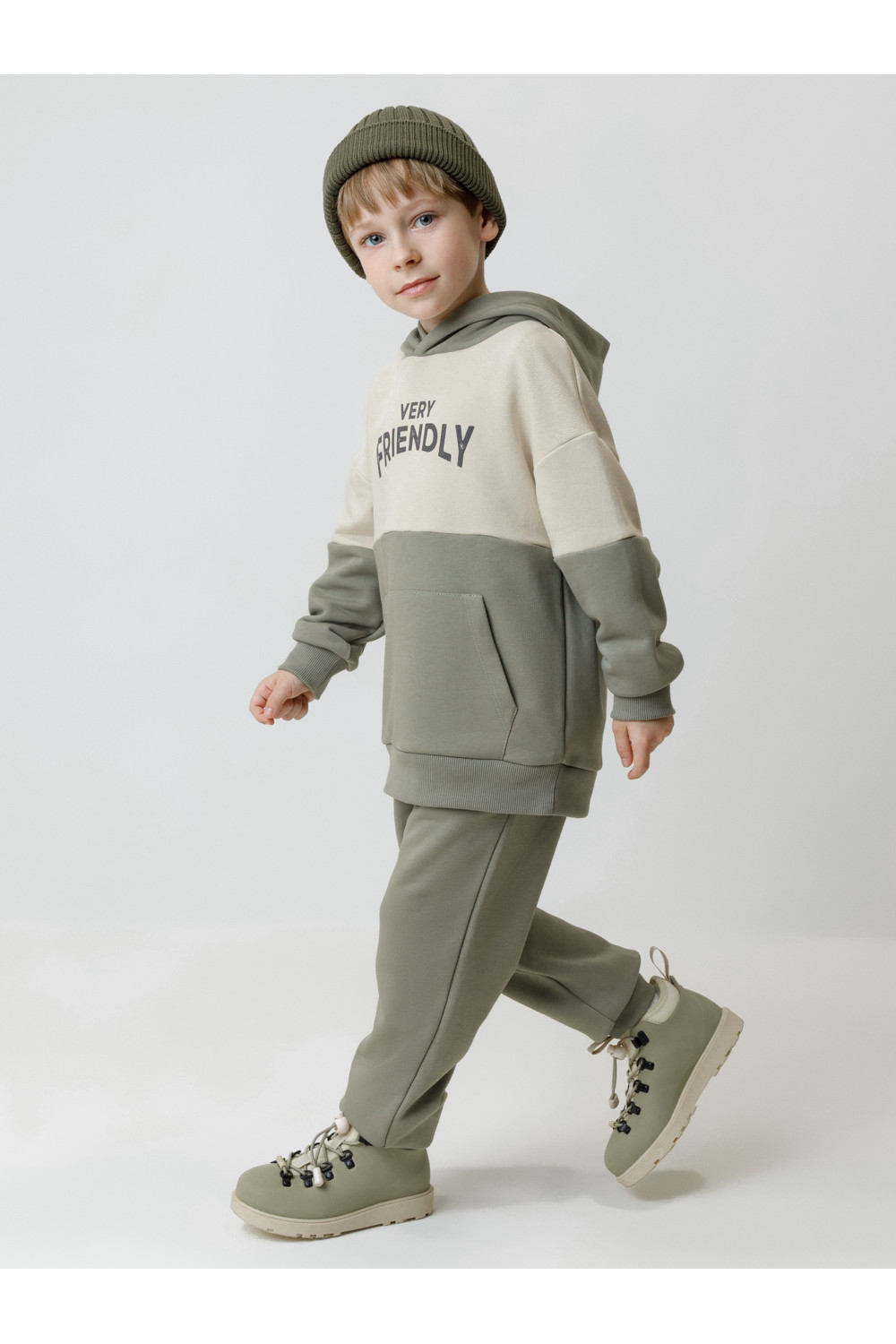 Брюки для мальчика из мягкого петельчатого футера трёхнитки. Модель с эластичным поясом на резинке регулируется по ширине с помощью шнурка. По бокам два удобных кармана. Низ на манжетах. Изделие сохраняет цвет и форму после многократных стирок. Все трикотажные полотна производятся в соответствии с нормами швейцарского сертификата ЭкоТекс.
