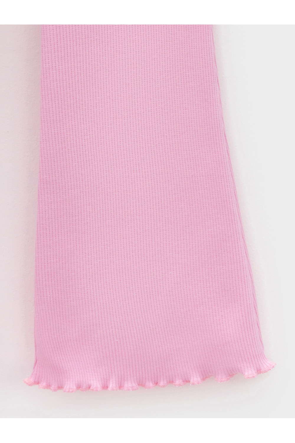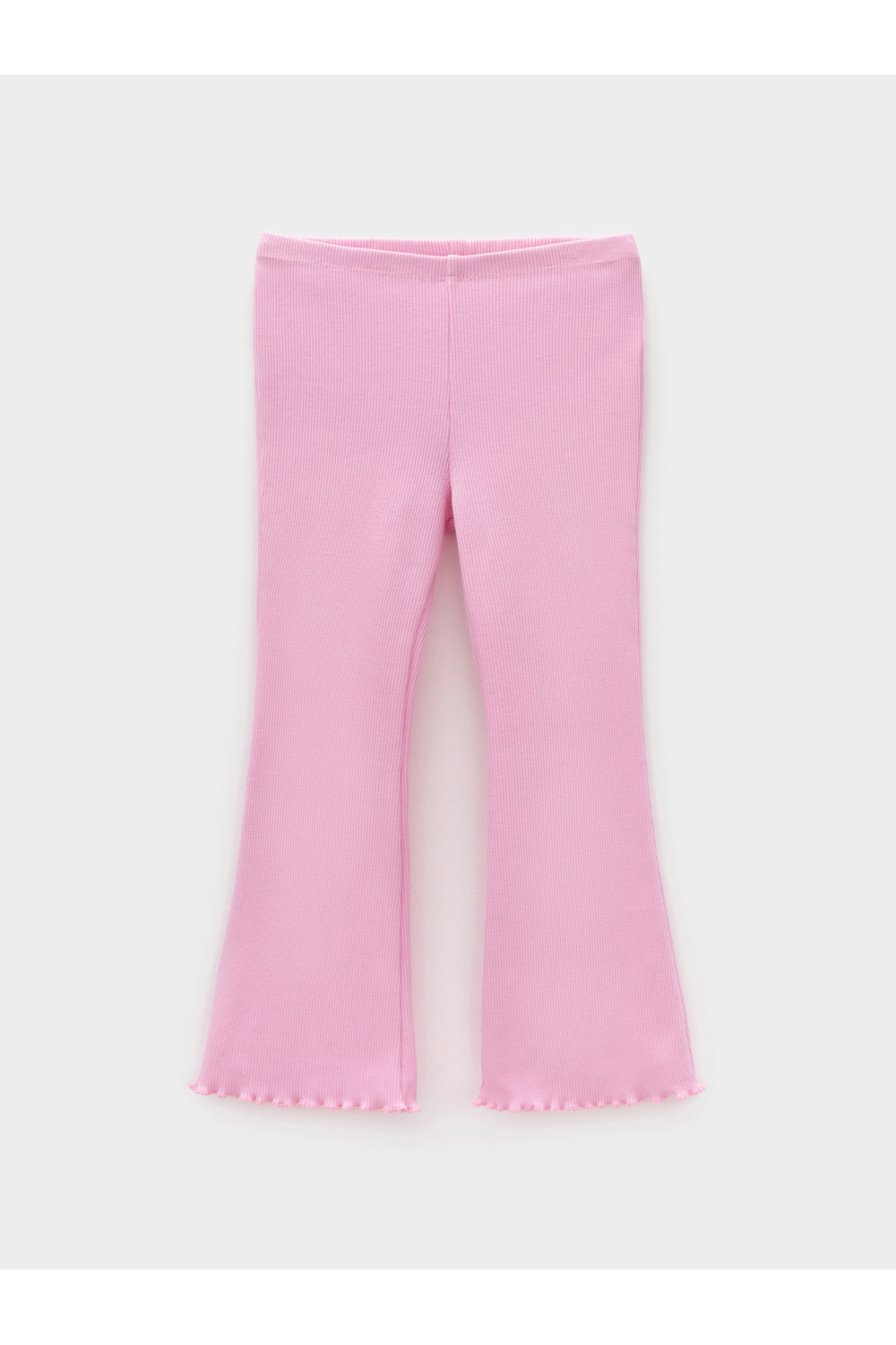 Брюки для девочки из эластичного трикотажа в рубчик. Пояс на резинке. Изделие сохраняет цвет и форму после многократных стирок. Все трикотажные полотна производятся в соответствии с нормами швейцарского сертификата ЭкоТекс.