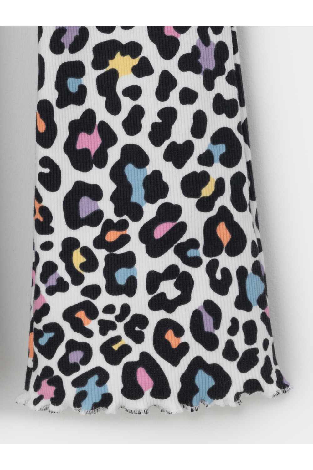 Брюки для девочки из эластичного трикотажа в рубчик. Пояс на резинке. Изделие сохраняет цвет и форму после многократных стирок. Все трикотажные полотна производятся в соответствии с нормами швейцарского сертификата ЭкоТекс.