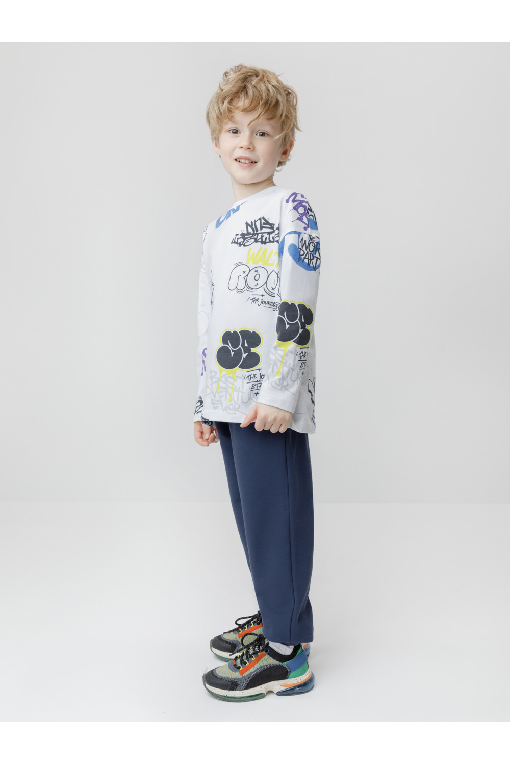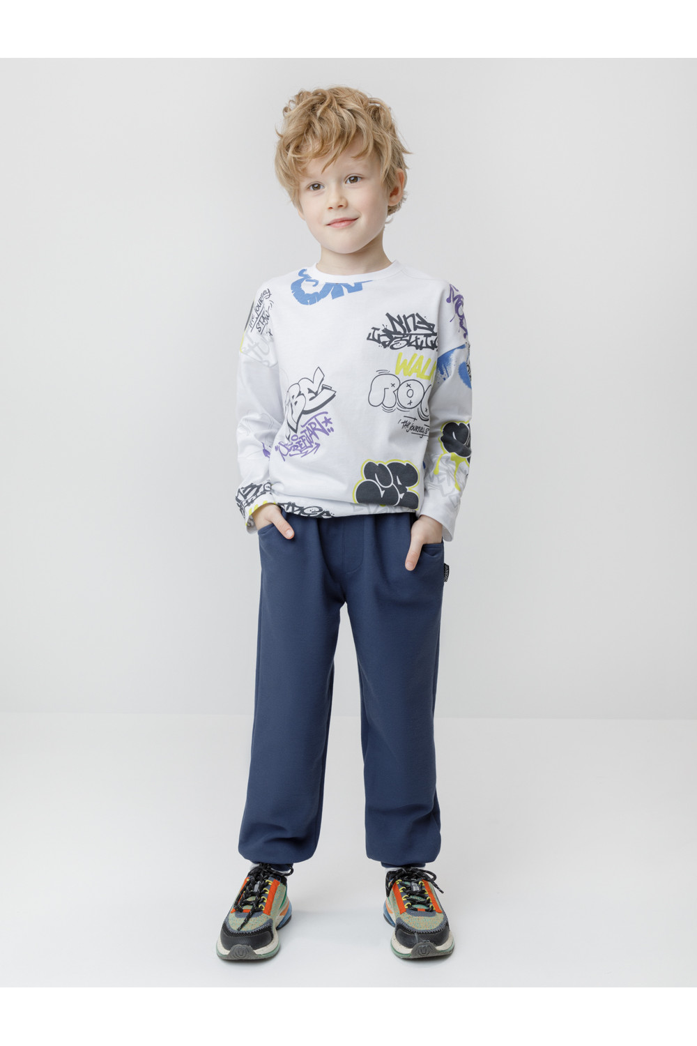 Брюки для мальчика из мягкого петельчатого трикотажа. В составе 80% натурального хлопка и 20% полиэстера, при этом полиэстер ввязан внутрь по особой технологии и не соприкасается с кожей. Модель с эластичным поясом на резинке и регулировкой по талии с помощью шнурка. Низ на манжетах. Изделие сохраняет цвет и форму после многократных стирок. Все трикотажные полотна производятся в соответствии с нормами швейцарского сертификата ЭкоТекс.