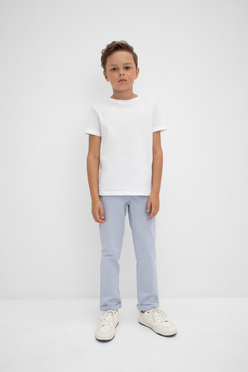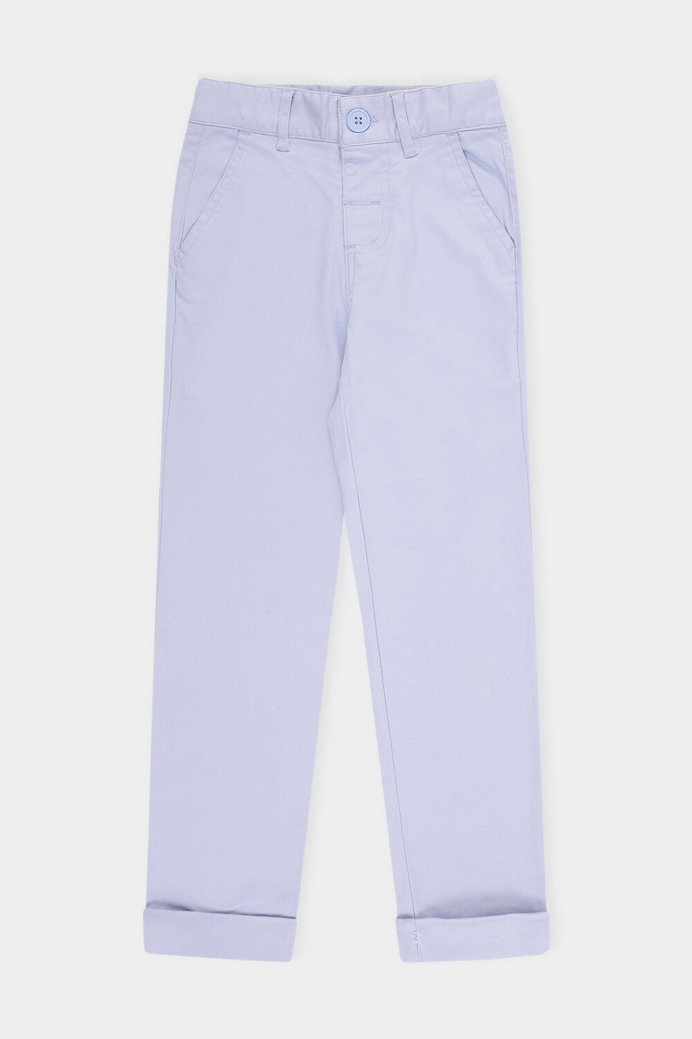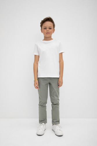 Брюки чинос для мальчика из высококачественного хлопка. Пояс застегивается на пуговицу и регулируется по ширине с помощью эластичной резинки с изнаночной стороны. По бокам два удобных кармана. По низу изделия подвороты с закрепками.