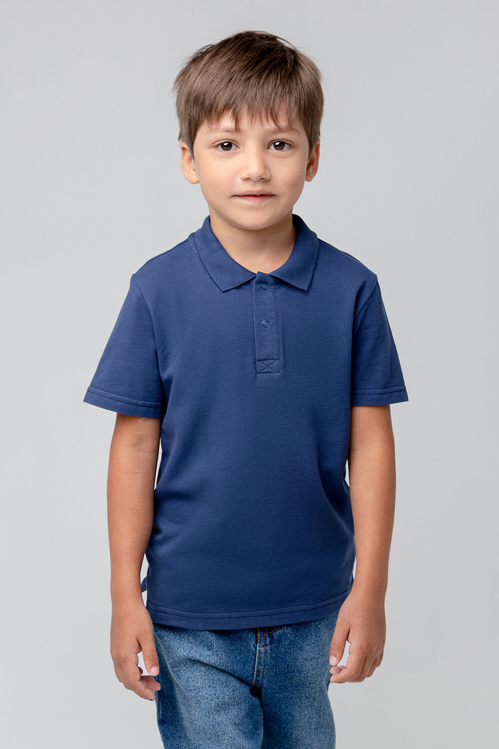 Поло для мальчика из высококачественного трикотажа пике. Застёгивается на кнопки на груди. Изделие сохраняет цвет и форму после многочисленных стирок.
