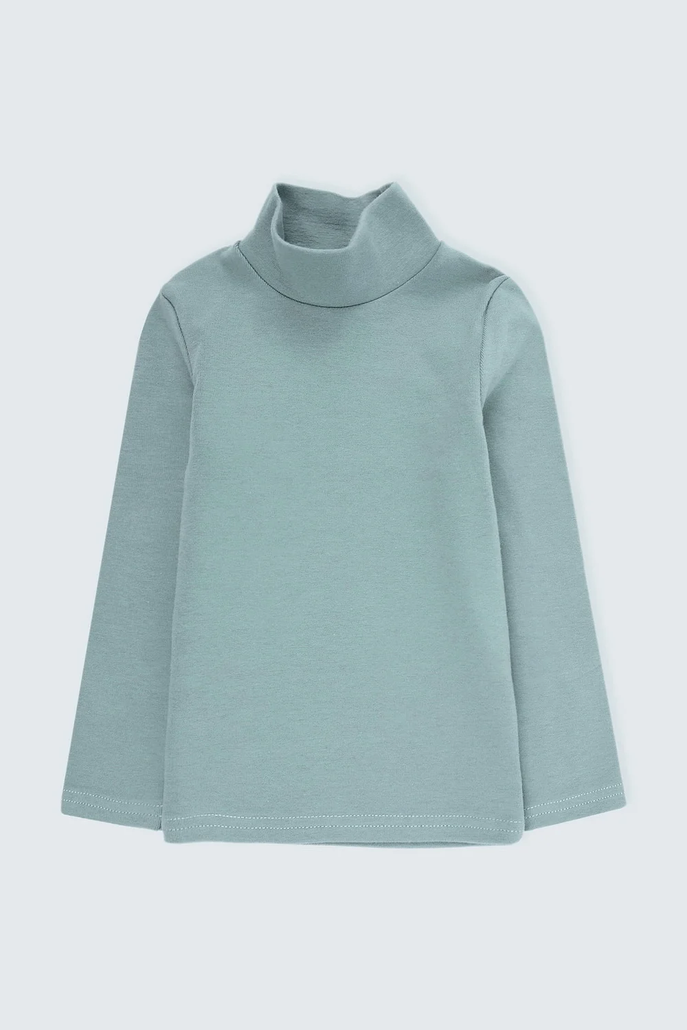 Однотонная водолазка с высоким воротником-стойкой и длинными рукавами. Выполнена из высококачественной эластичной рибаны с начёсом. Эластан в составе позволяет изделию быть более эластичным и дольше сохранять форму. Воротник защищает горло от прохладного воздуха.