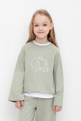 Укороченная толстовка с расклешенными рукавами и принтом для девочки из высококачественного петельчатого футера . Обтачка горловины выполнена из эластичного полотна.Оригинальный принт выполнен из стойких текстильных красителей.