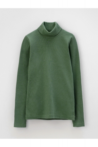 Однотонная базовая водолазка с длинными втачными рукавами. Сшита из эластичного трикотажа кашкорсе с эластаном. Рукава и низ изделия обработаны плоскими швами.