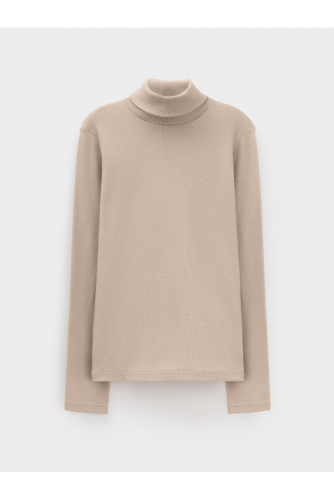 Однотонная базовая водолазка с длинными втачными рукавами. Сшита из эластичного трикотажа кашкорсе с эластаном. Рукава и низ изделия обработаны плоскими швами.