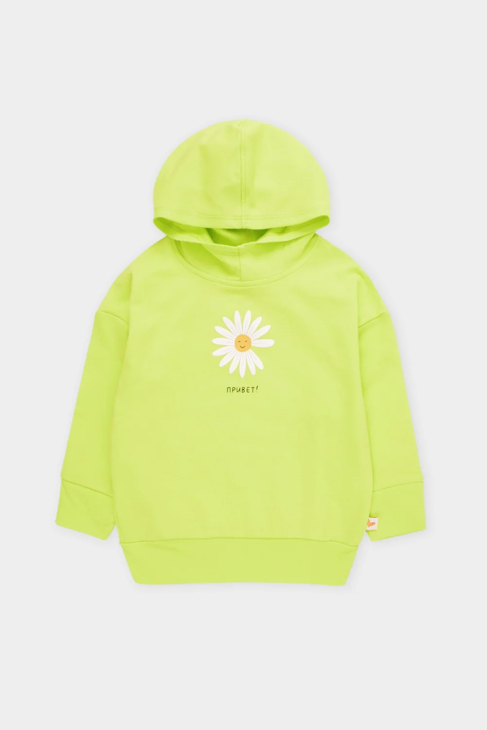 Худи с капюшоном для девочки из петельчатого футера. Принт выполнен из высококачественных текстильных красителей.