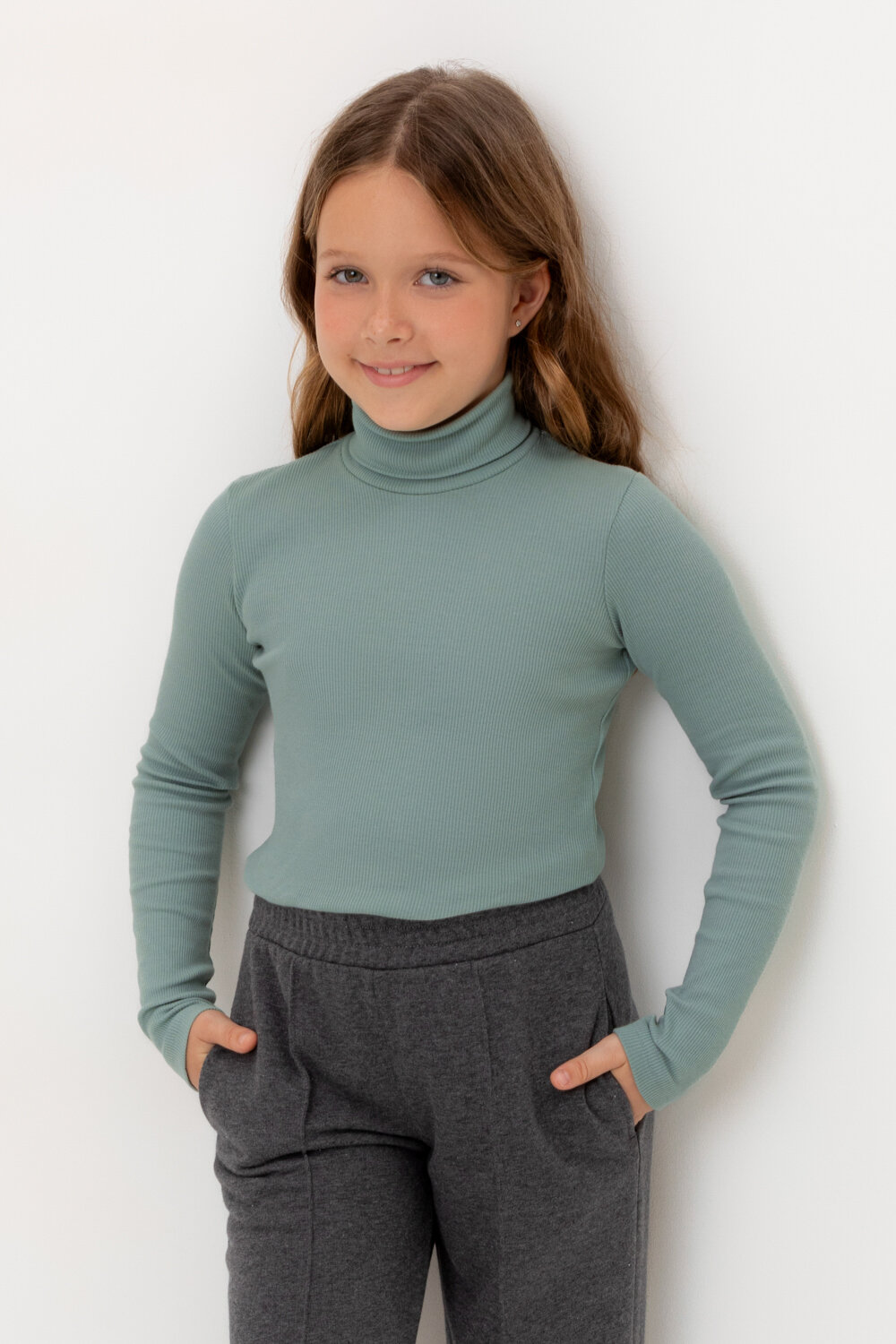 Однотонная водолазка с длинными рукавами. Выполнена из высококачественного эластичного трикотажа в рубчик. Эластан в составе позволяет изделию быть более эластичным и дольше сохранять опрятный внешний вид. Воротник с отворотом защищает горло от прохладного воздуха.