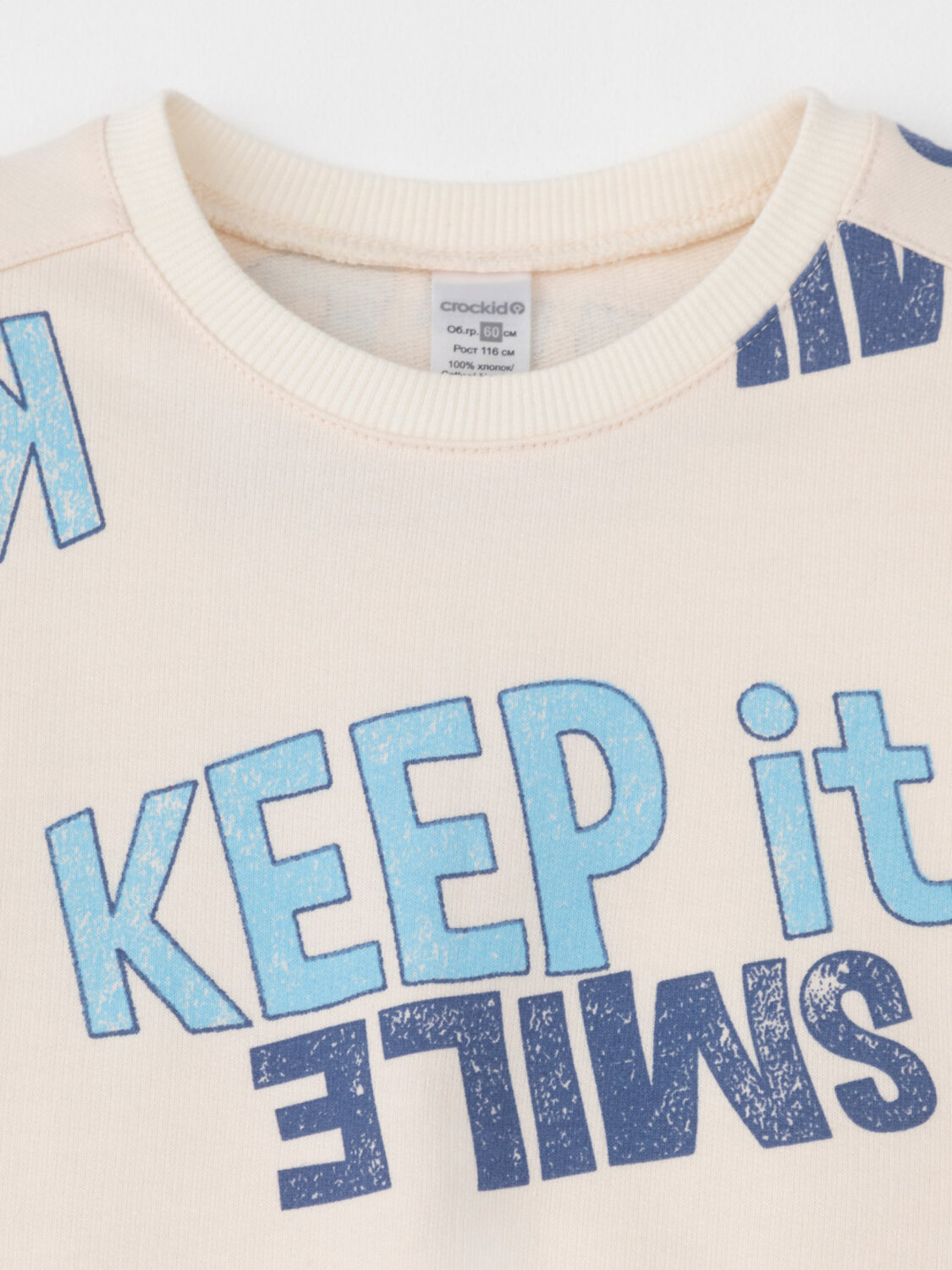 Джемпер для мальчика из высококачественного петельчатого футера. Обтачка горловины, манжеты и пояс выполнены из эластичного полотна. Оригинальная набивка выполнена из стойких текстильных гипоаллергенных красителей.