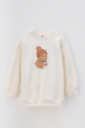 Джемпер удлиненный для девочки из высококачественного петельчатого футера с начесом. Обтачка горловины, манжеты и пояс выполнены из эластичного полотна. Оригинальный принт выполнен из стойких текстильных красителей.