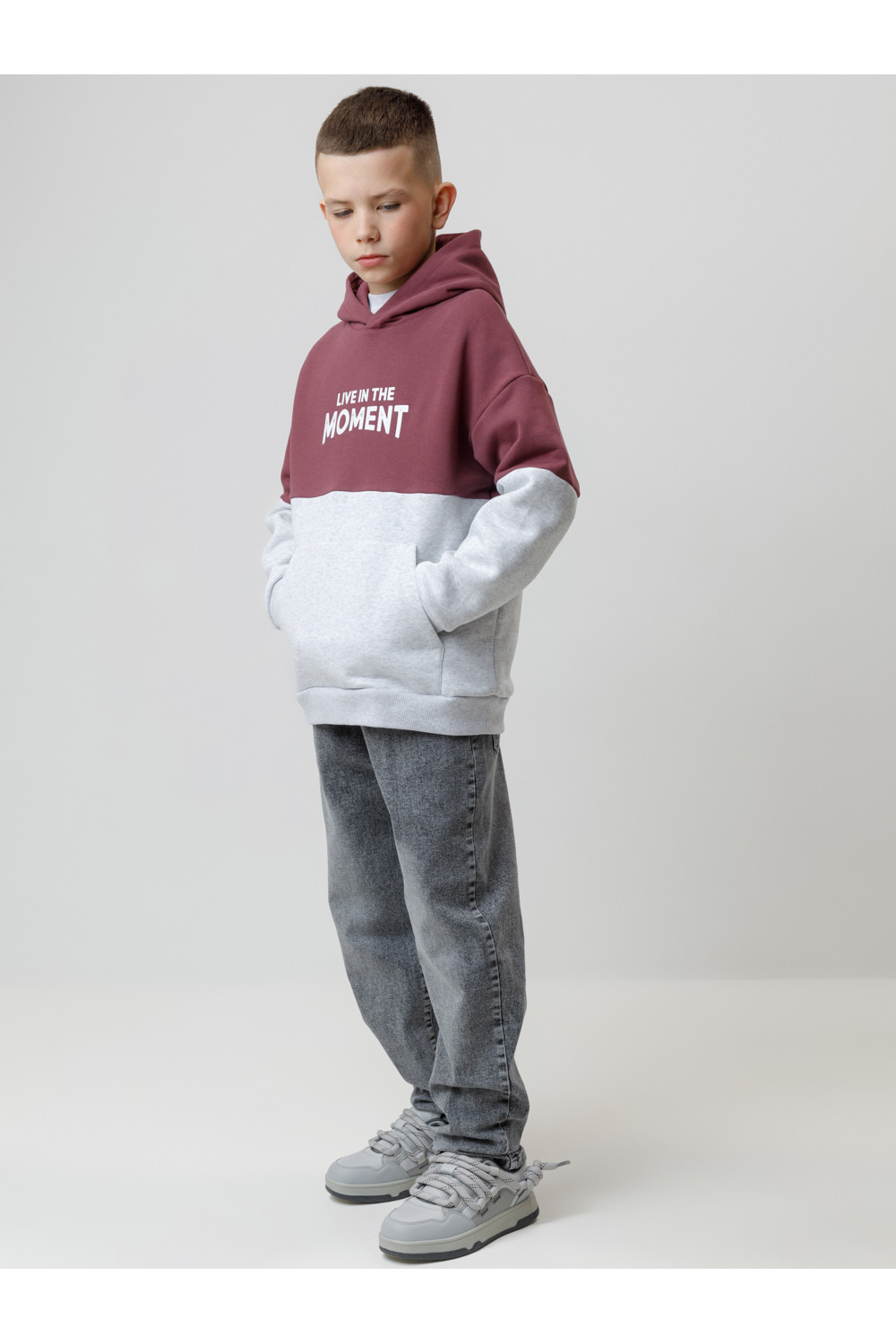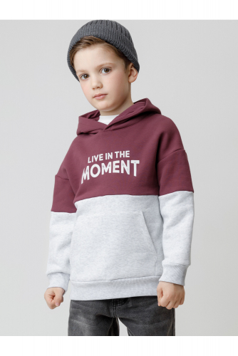 Худи с капюшоном для мальчика из тёплого футера с начёсом. Пояс и манжеты выполнены из мягкого эластичного трикотажа. Спереди удобный и вместительный карман-кенгуру. Худи сохраняет форму и стойкий цвет после многочисленных стирок и идеально подходит на каждый день. Оригинальный принт выполнен из стойких текстильных гипоаллергенных красителей. Все трикотажные полотна производятся в соответствии с нормами швейцарского сертификата ЭкоТекс.