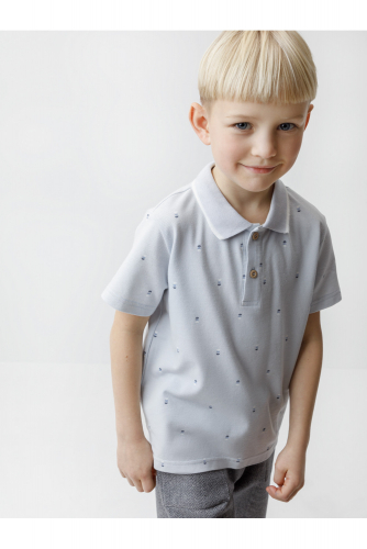 Футболка-поло для мальчика из высококачественного трикотажного полотна пике. У изделия вязаный воротник и застёжка спереди на пуговицы. Поло сохраняет цвет и форму после многократных стирок. Все трикотажные полотна производятся в соответствии с нормами швейцарского сертификата ЭкоТекс.