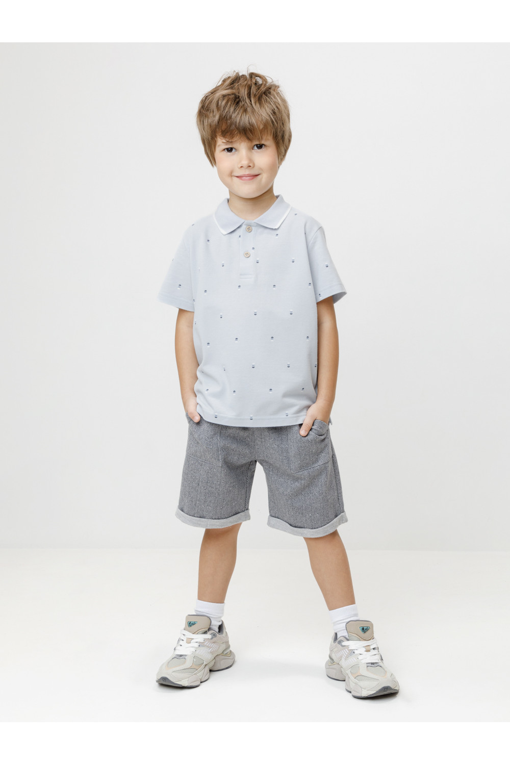 Футболка-поло для мальчика из высококачественного трикотажного полотна пике. У изделия вязаный воротник и застёжка спереди на пуговицы. Поло сохраняет цвет и форму после многократных стирок. Все трикотажные полотна производятся в соответствии с нормами швейцарского сертификата ЭкоТекс.