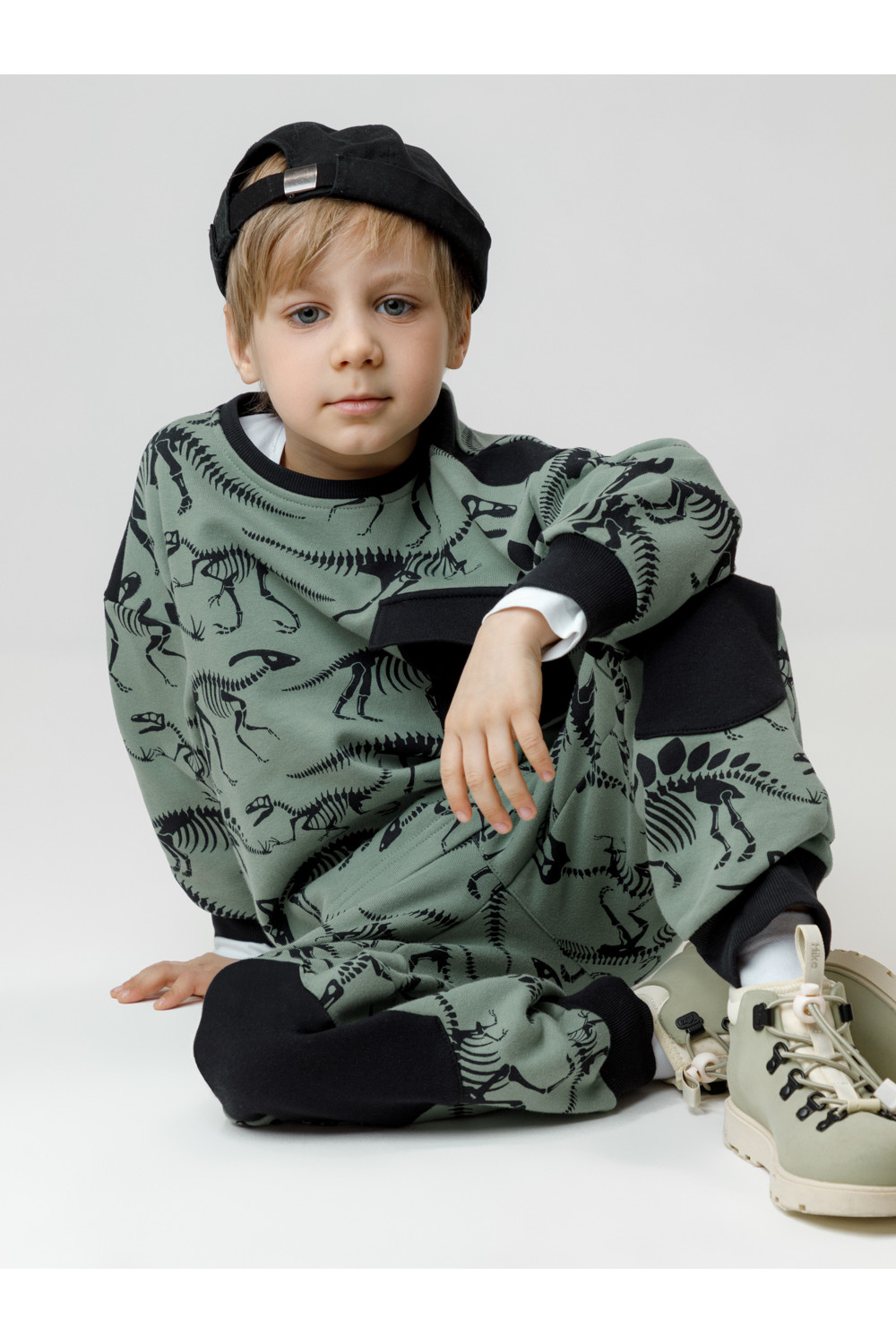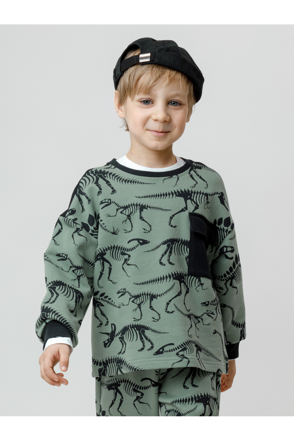 Свитшот для мальчика из высококачественного петельчатого футера. Обтачка горловины и манжеты выполнены из эластичного полотна. Для удобства одевания имеется застёжка на кнопки в размерах 92 и 98. Оригинальный рисунок нанесён с помощью стойких текстильных гипоаллергенных красителей.