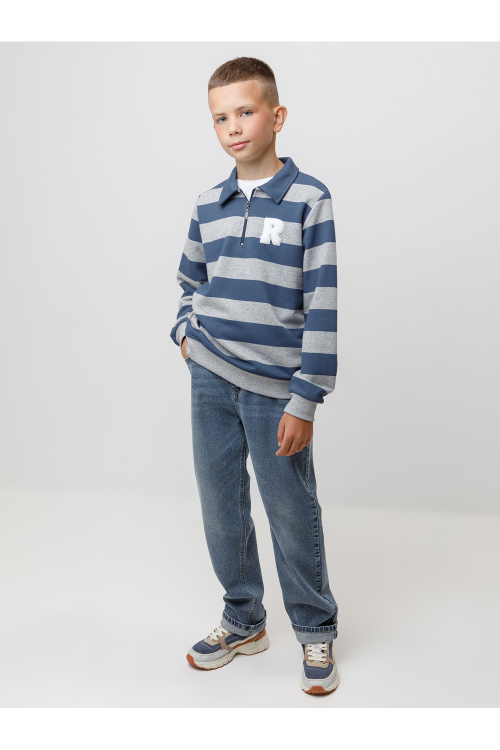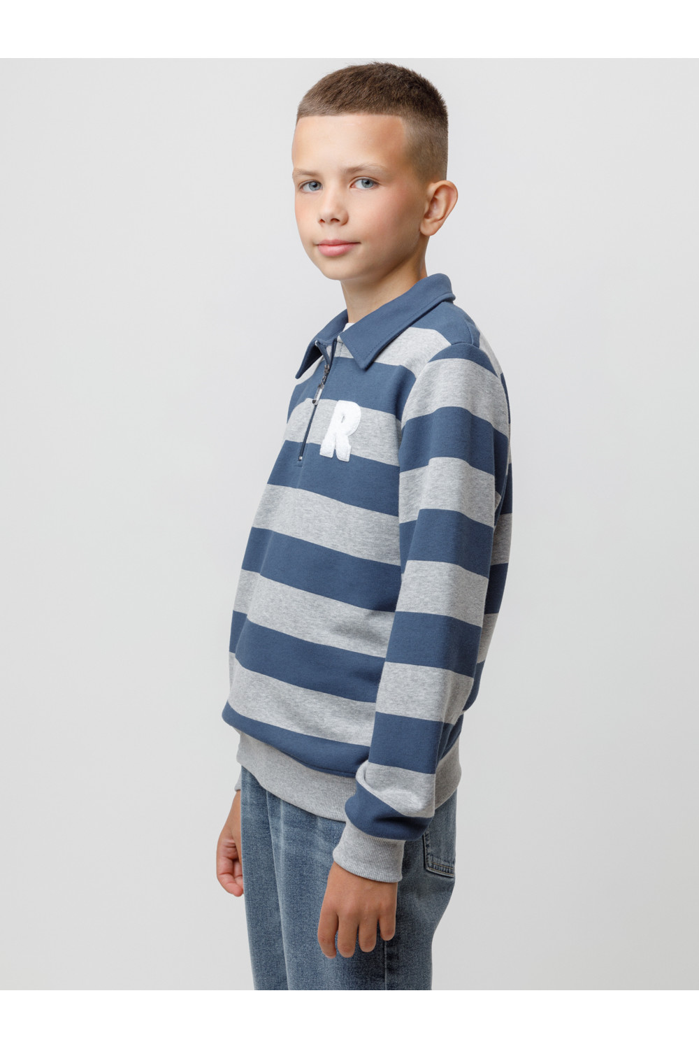Свитшот с воротником для мальчика. Изготовлен из высококачественного петельчатого футера. В составе 80% натурального хлопка и 20% полиэстера, при этом полиэстер ввязан внутрь по особой технологии и не соприкасается с кожей. Манжеты и пояс выполнены из эластичного полотна. На груди короткая застёжка на молнию. Оригинальный рисунок выполнен из стойких текстильных гипоаллергенных красителей. Изделие сохраняет цвет и форму после многократных стирок.