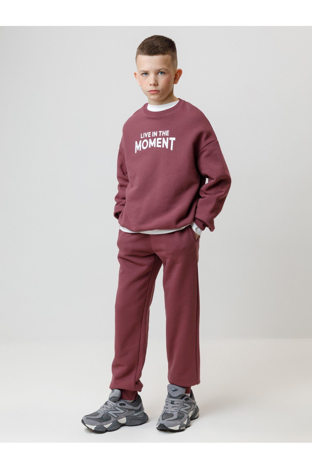 Свитшот для мальчика из высококачественного петельчатого футера. Обтачка горловины, манжеты и пояс выполнены из эластичного полотна. Оригинальный принт нанесён с помощью стойких текстильных гипоаллергенных красителей.