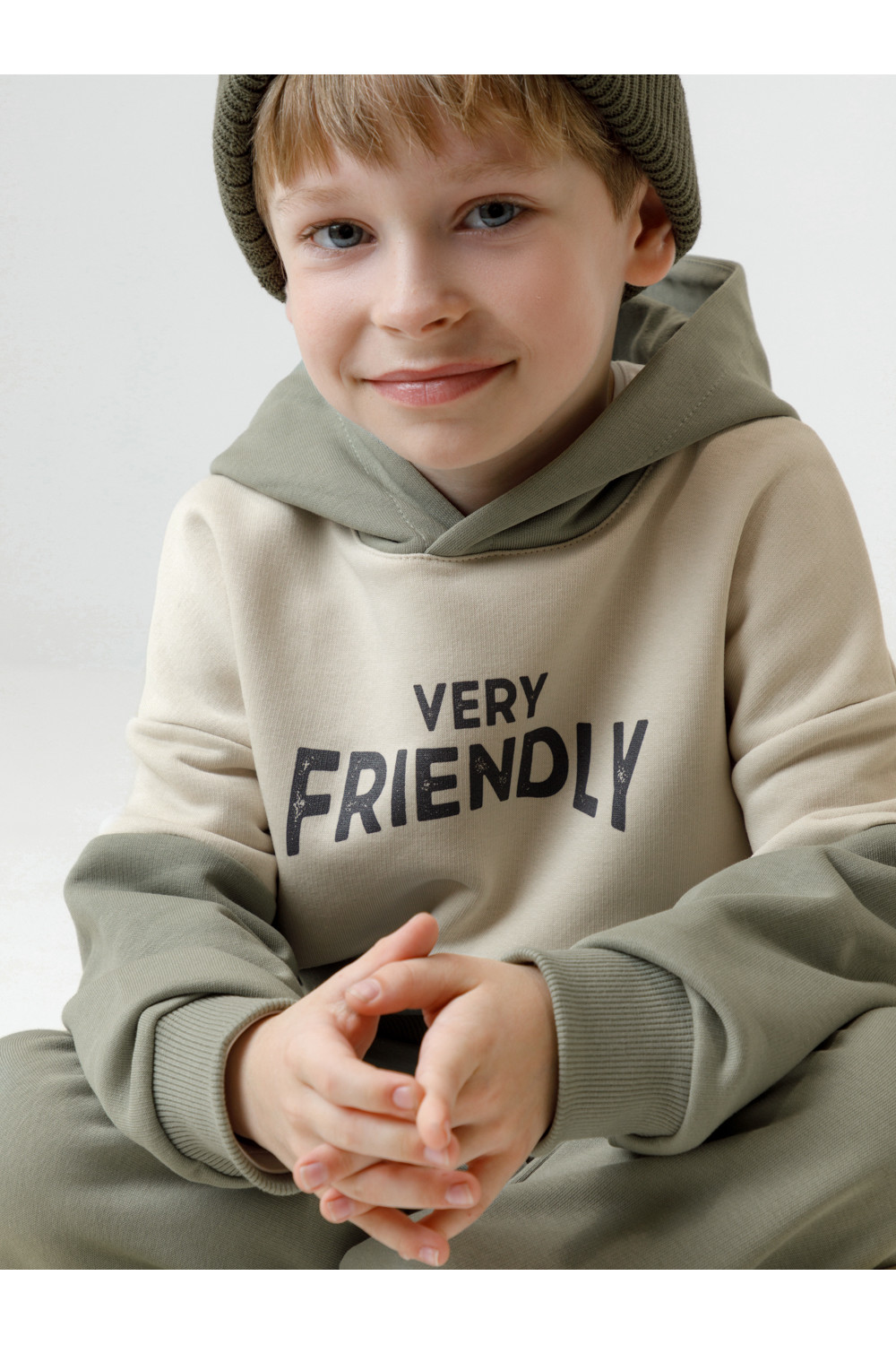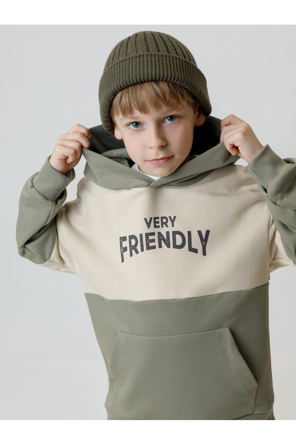 Худи с капюшоном для мальчика из мягкого петельчатого футера трёхнитки. В составе 80% натурального хлопка и 20% полиэстера, при этом полиэстер ввязан внутрь по особой технологии и не соприкасается с кожей. Пояс и манжеты выполнены из мягкого эластичного трикотажа. Спереди удобный и вместительный карман-кенгуру. Худи сохраняет форму и стойкий цвет после многочисленных стирок и идеально подходит на каждый день. Оригинальный принт выполнен из стойких текстильных гипоаллергенных красителей. Все трикотажные полотна производятся в соответствии с нормами швейцарского сертификата ЭкоТекс.