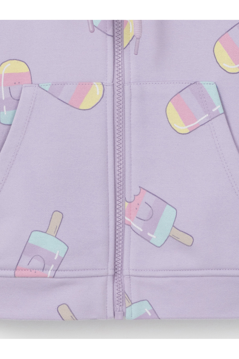 Трикотажная толстовка с капюшоном для девочки. Изготовлена из мягкого петельчатого футера с оригинальным рисунком. В составе 80% натурального хлопка и 20% полиэстера, при этом полиэстер ввязан внутрь по особой технологии и не соприкасается с кожей. Застёгивается на молнию. Манжеты на резинке. По низу пояс из основного полотна. Изделие сохраняет цвет и форму после многократных стирок. Все трикотажные полотна производятся в соответствии с нормами швейцарского сертификата ЭкоТекс.