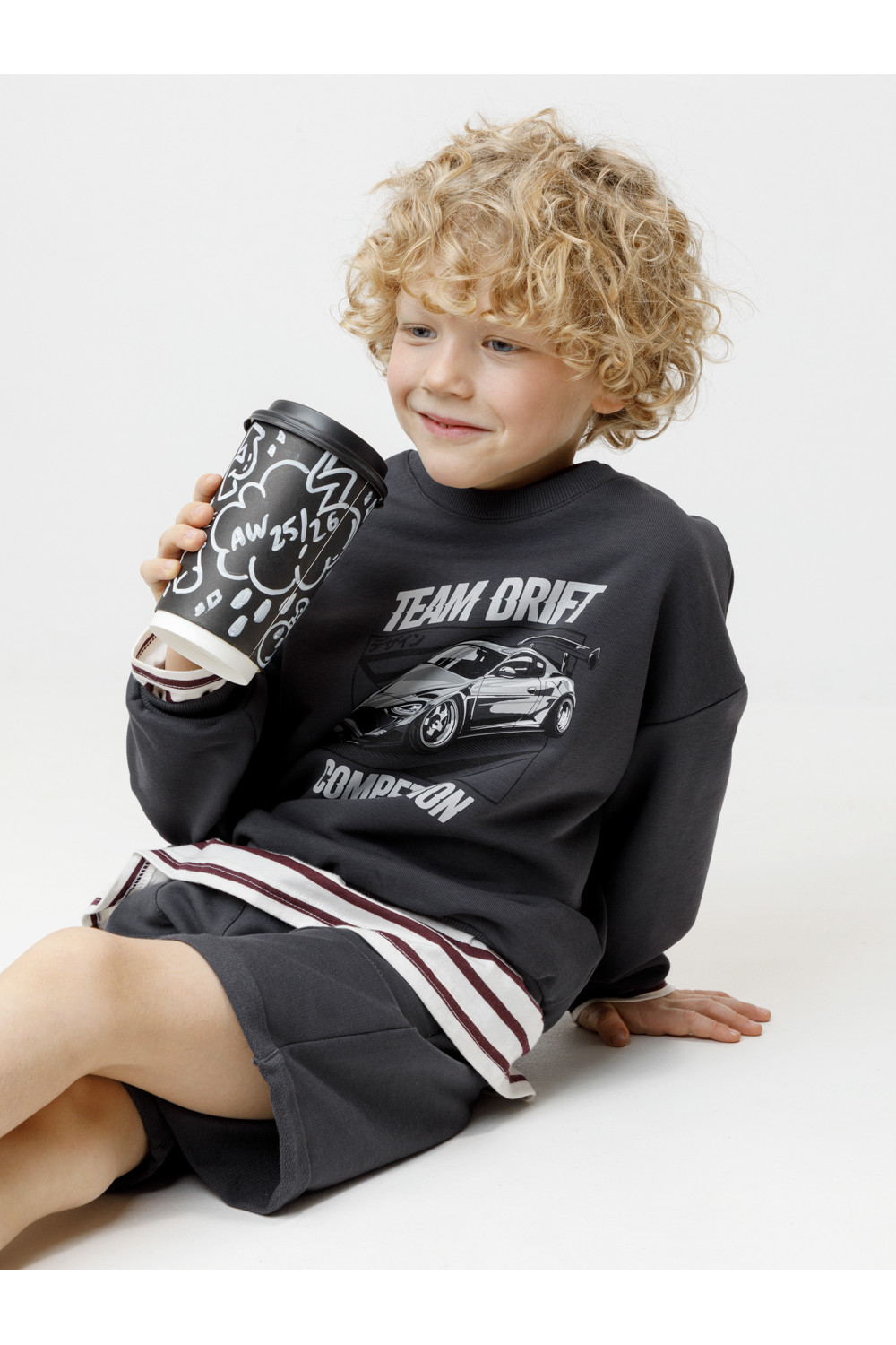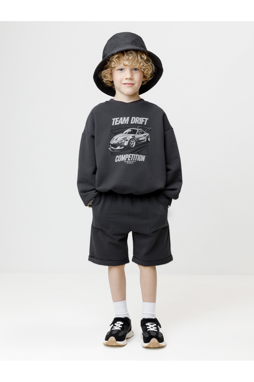 Свитшот для мальчика из высококачественного трикотажного полотна. В составе 80% натурального хлопка и 20% полиэстера, при этом полиэстер ввязан внутрь по особой технологии и не соприкасается с кожей. На рукавах мягкие манжеты. Пояс выполнен из эластичного трикотажа. Оригинальный рисунок выполнен из стойких текстильных гипоаллергенных красителей. Изделие сохраняет цвет и форму после многократных стирок. Все трикотажные полотна производятся в соответствии с нормами швейцарского сертификата ЭкоТекс.