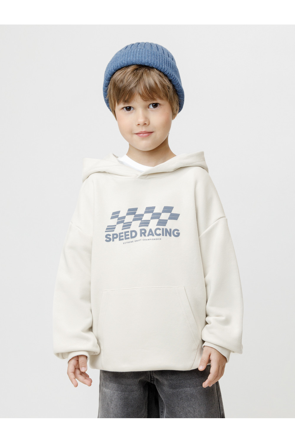 Трикотажное худи с капюшоном из мягкого петельчатого футера. В составе 80% натурального хлопка и 20% полиэстера, при этом полиэстер ввязан внутрь по особой технологии и не соприкасается с кожей. Спереди удобный накладной карман-кенгуру. Манжеты и пояс из эластичного трикотажа в рубчик. Изделие сохраняет цвет и форму после многократных стирок. Все трикотажные полотна производятся в соответствии с нормами швейцарского сертификата ЭкоТекс.