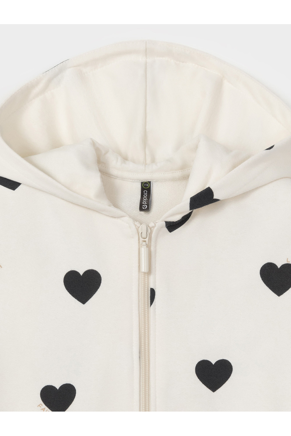 Трикотажная толстовка с капюшоном для девочки. Изготовлена из мягкого футера с оригинальным рисунком. В составе 80% натурального хлопка и 20% полиэстера, при этом полиэстер ввязан внутрь по особой технологии и не соприкасается с кожей. Застёгивается на молнию. Эластичные манжеты и пояс выполнены из полотна в рубчик. Изделие сохраняет цвет и форму после многократных стирок. Все трикотажные полотна производятся в соответствии с нормами швейцарского сертификата ЭкоТекс.