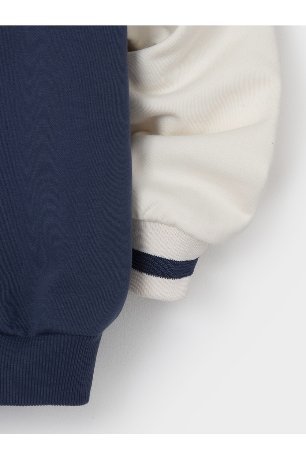 Свитшот с контрастными рукавами для мальчика. В составе 80% натурального хлопка и 20% полиэстера, при этом полиэстер ввязан внутрь по особой технологии и не соприкасается с кожей. Изготовлен из мягкого петельчатого трикотажа. Оригинальный принт нанесён с помощью стойких текстильных гипоаллергенных красителей. Изделие сохраняет цвет и форму после многократных стирок. Все трикотажные полотна производятся в соответствии с нормами швейцарского сертификата ЭкоТекс.