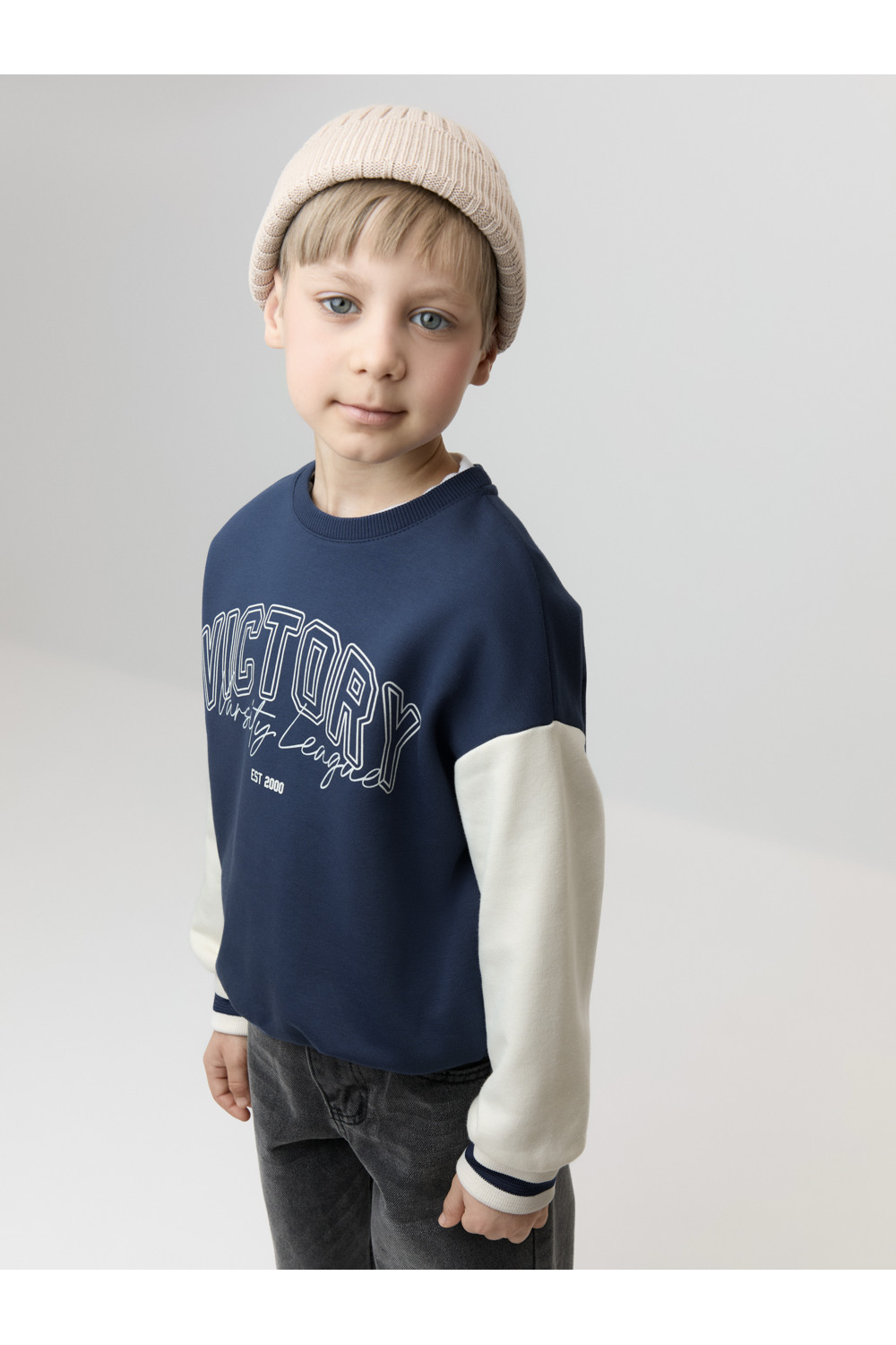 Свитшот с контрастными рукавами для мальчика. В составе 80% натурального хлопка и 20% полиэстера, при этом полиэстер ввязан внутрь по особой технологии и не соприкасается с кожей. Изготовлен из мягкого петельчатого трикотажа. Оригинальный принт нанесён с помощью стойких текстильных гипоаллергенных красителей. Изделие сохраняет цвет и форму после многократных стирок. Все трикотажные полотна производятся в соответствии с нормами швейцарского сертификата ЭкоТекс.
