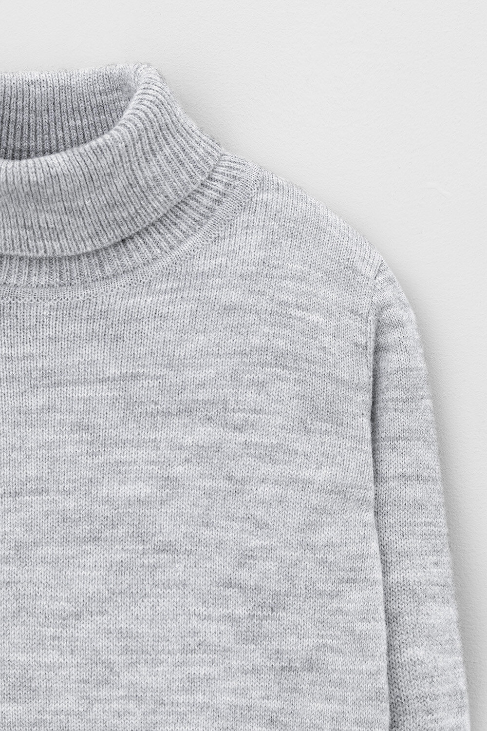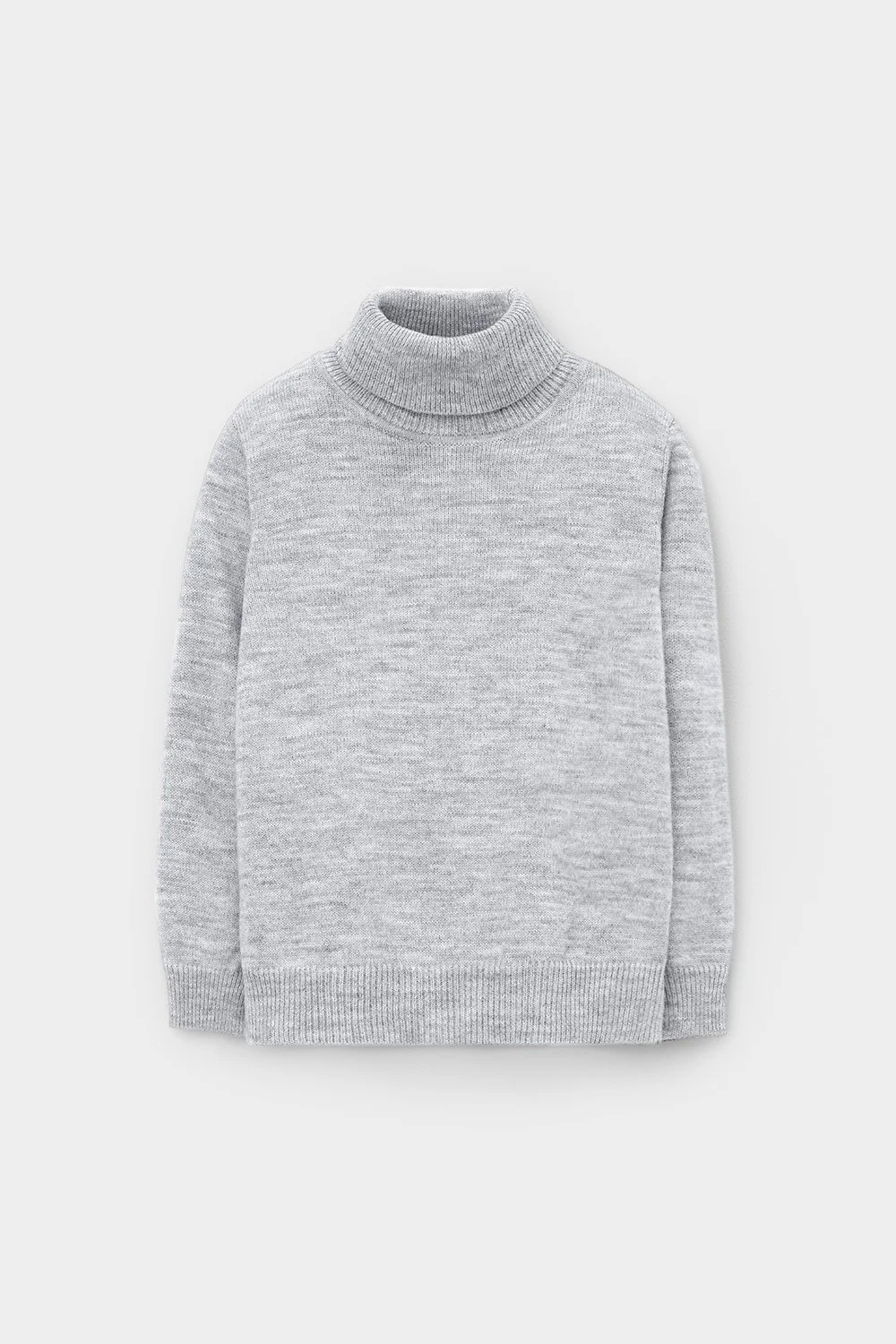 Вязаный джемпер для мальчика из полушерстяной пряжи. Высокий воротник с отворотом хорошо защищает от холода. Длинные рукава с манжетами. Внизу эластичный пояс. Изделие сохраняет форму и стойкий цвет после многочисленных стирок.