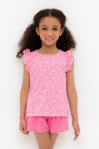 CROCKID Фуфайка КР 301627-1 неоновый розовый, цветочки