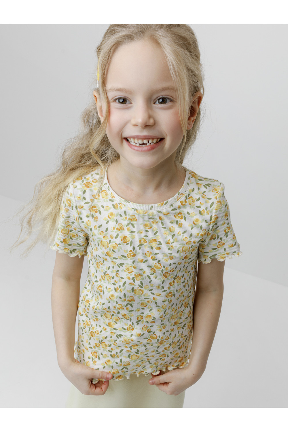 Футболка для девочки из эластичного трикотажного полотна в рубчик. Изделие сохраняет цвет и форму после многократных стирок. Все трикотажные полотна производятся в соответствии с нормами швейцарского сертификата ЭкоТекс.