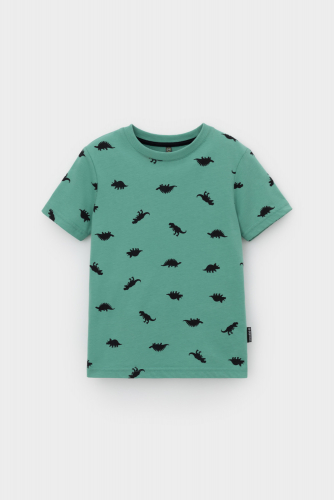 Трикотажная футболка для мальчика из натурального хлопка. У изделия короткие втачные рукава, удлинённая спинка и небольшие разрезы в боковых швах. Оригинальная набивка выполнена из стойких текстильных гипоаллергенных красителей. Футболка сохраняет цвет и форму после многократных стирок.