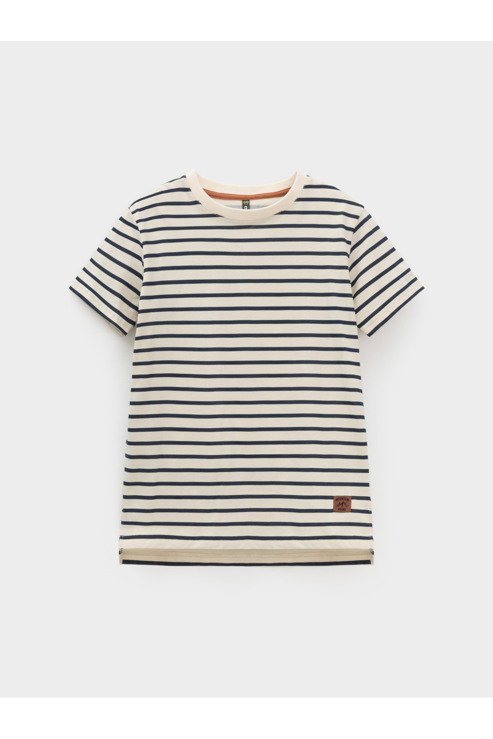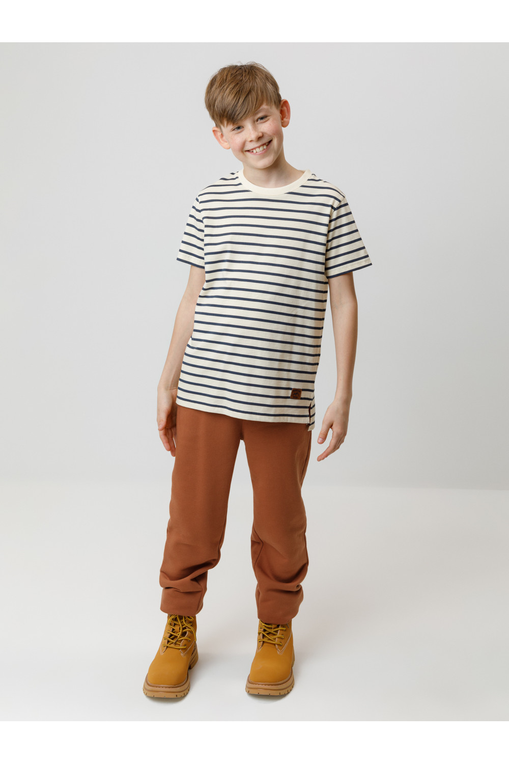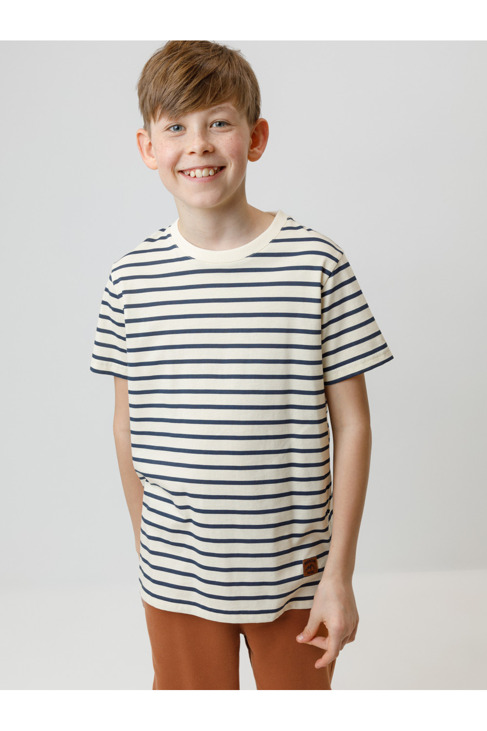 Футболка для мальчика из гладкого трикотажа, произведённого из высококачественного натурального хлопка. По бокам разрезы. Изделие сохраняет цвет и форму после многократных стирок. Все трикотажные полотна производятся в соответствии с нормами швейцарского сертификата ЭкоТекс.