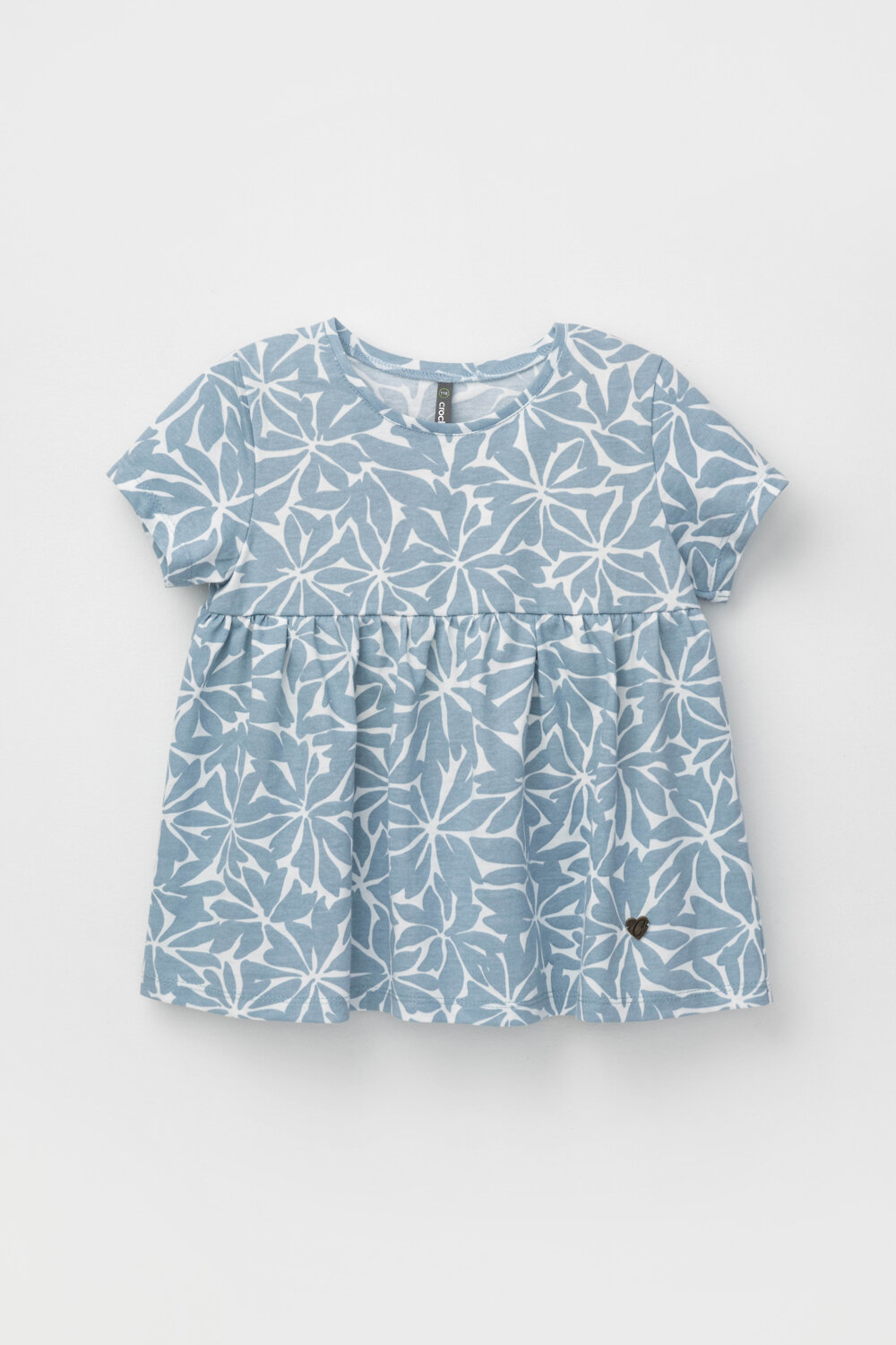 Футболка с кокеткой для девочки из высококачественного набивного трикотажного полотна. Оригинальная набивка выполнена из стойких текстильных красителей