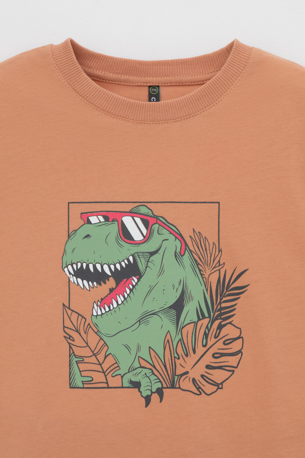 Футболка для мальчика из высококачественного трикотажного полотна. Оригинальный принт выполнен из стойких текстильных красителей. Для удобства в размерах 92 и 98 на плече есть застежка на кнопки.