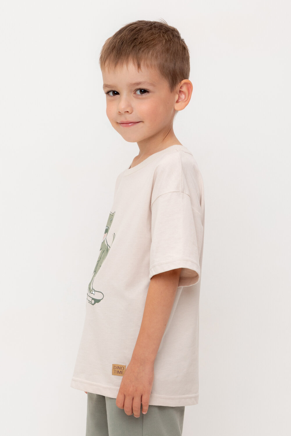 Футболка для мальчика из высококачественного трикотажного полотна. Оригинальный принт выполнен из стойких текстильных гипоаллергенных красителей. Для удобства в размерах 92 и 98 на спинке есть застежка на кнопки.