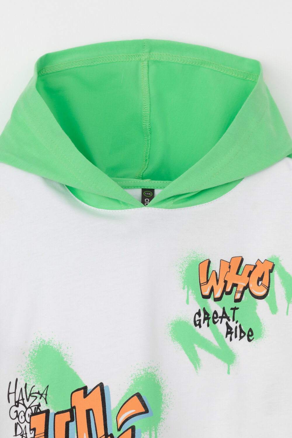 Футболка с капюшоном для мальчика из высококачественного трикотажного полотна. Оригинальный принт выполнен из стойких текстильных гипоаллергенных красителей.
