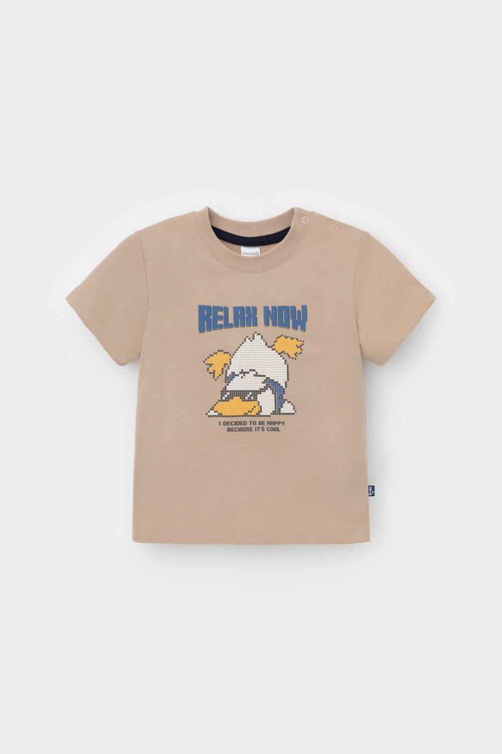 Футболка для мальчика из высококачественного трикотажного полотна. Оригинальный принт выполнен из стойких текстильных гипоаллергенных красителей. Для удобства на плече застежка на кнопки.
