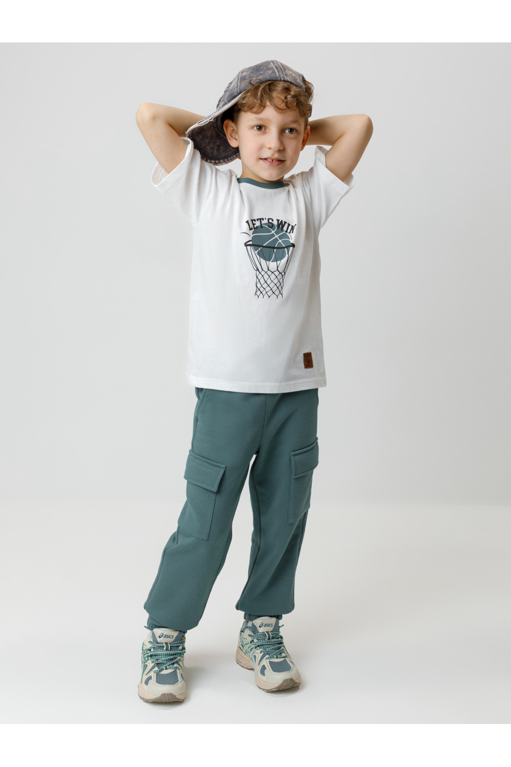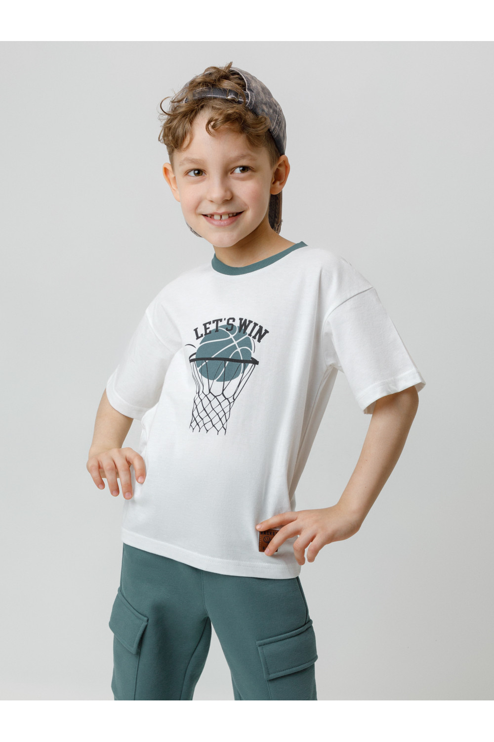 Футболка для мальчика из гладкого трикотажа, произведённого из высококачественного натурального хлопка. Для удобства одевания имеется застёжка на кнопки в размерах 92 и 98. Оригинальный принт выполнен из стойких текстильных гипоаллергенных красителей. Изделие сохраняет цвет и форму после многократных стирок. Все трикотажные полотна производятся в соответствии с нормами швейцарского сертификата ЭкоТекс.