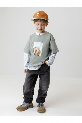 Футболка для мальчика из гладкого трикотажа, произведённого из высококачественного натурального хлопка. Для удобства одевания имеется застёжка на кнопки в размерах 92 и 98. Оригинальный принт нанесён с помощью стойких текстильных гипоаллергенных красителей. Изделие сохраняет цвет и форму после многократных стирок. Все трикотажные полотна производятся в соответствии с нормами швейцарского сертификата ЭкоТекс.